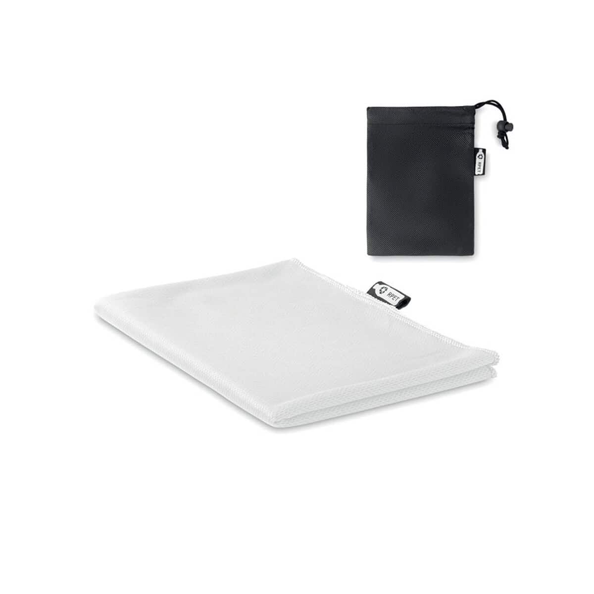 Ręcznik z etui, RPET TUKO RPET to unikalny, a zarazem przyjazny środowisku gadżet, który skutecznie wyróżni markę dla Twojej firmy. Wykonany z przetworzonego poliestru, zachwyca lekkością – zaledwie waga 0,046 kg – oraz imponującą chłonnością, dzięki czemu po intensywnym treningu czy wędrówce błyskawicznie osusza skórę. W zestawie znajduje się praktyczne etui z RPET, które ułatwia transport i pozwala utrzymać ręcznik w czystości 🙂.