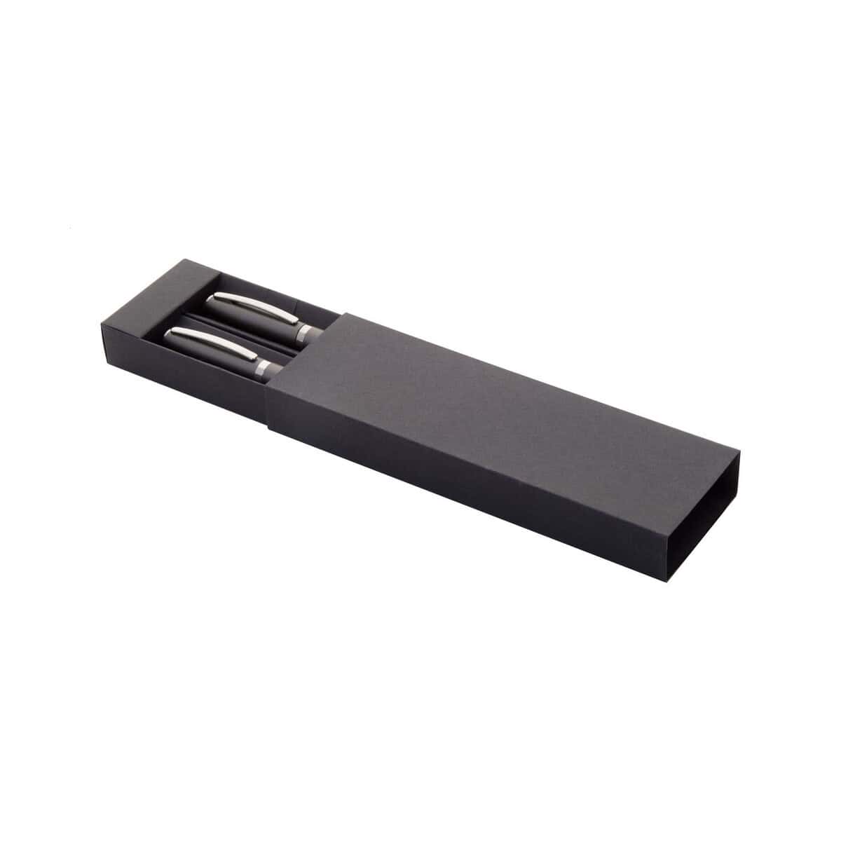 Redivi zestaw piśmienniczy to elegancki duet pióra kulkowego i długopisu, który wprowadzi powiew luksusu do każdego biurka. Wykonany z aluminium pochodzącego z recyklingu, wyróżnia się nie tylko nowoczesnym wzornictwem, lecz także ekologicznym charakterem. Dzięki temu staje się gadżet przyjazny środowisku, a jednocześnie niezwykle trwały. Całość zamknięto w stylowym pudełku upominkowym z czarnego papieru – wystarczy dodać firmowe logo lub subtelny nadruk, aby otrzymać osobisty upominek 🚀.