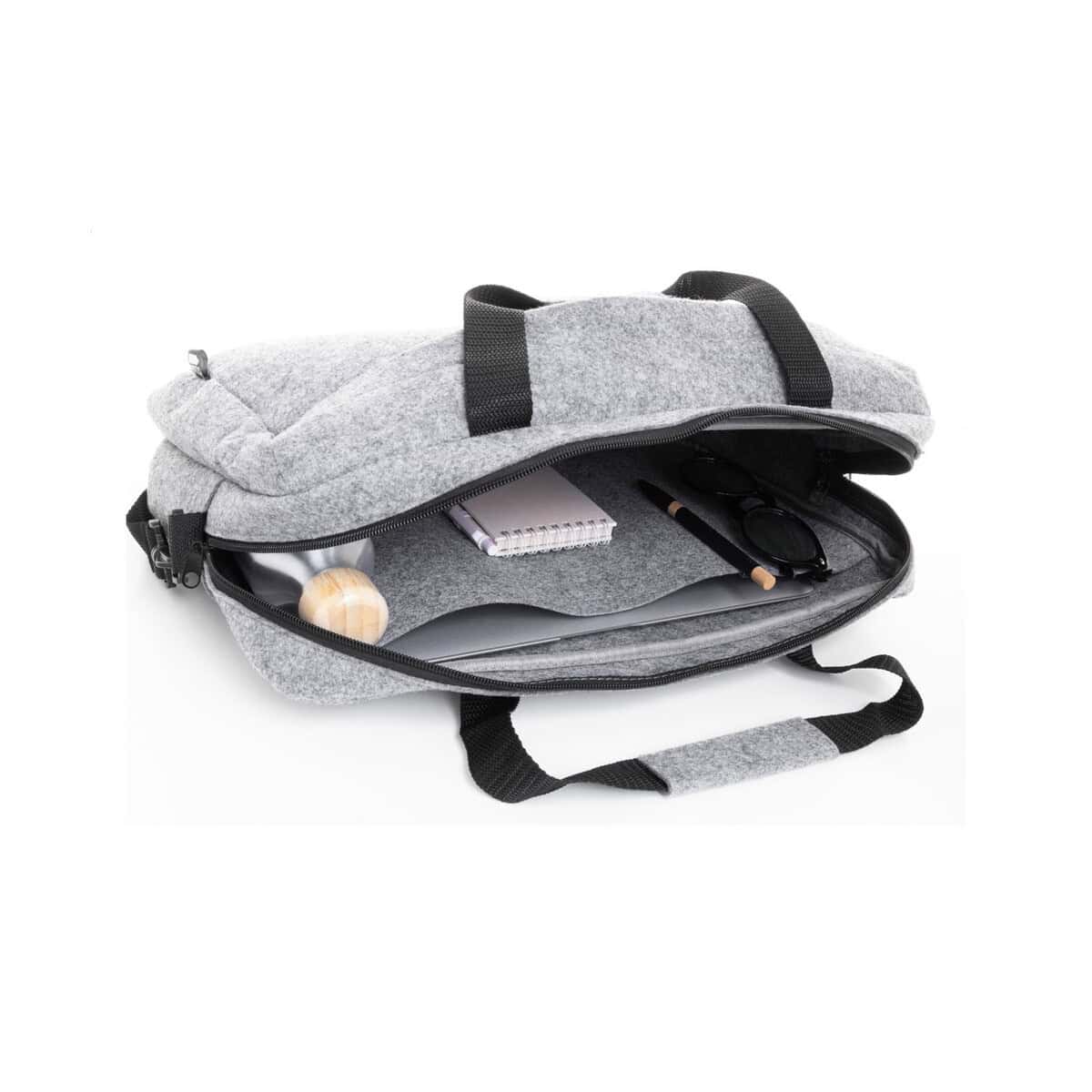 Refelt Docu Torba na dokumenty z filcu RPET to znakomity towarzysz nowoczesnego biznesu, który łączy w sobie funkcjonalność, ekologię i styl. Wykonana z filcu PET pozyskanego z recyklingu, nie tylko wspiera środowisko, ale także przyciąga wzrok swoją elegancką szarą lub ciemnoszarą barwą. Ta torba z kategorii torby na laptopa z logo oraz torby konferencyjne z logo została stworzona z myślą o wymagających profesjonalistach, którym zależy na praktycznym i estetycznym gadżecie 😊.