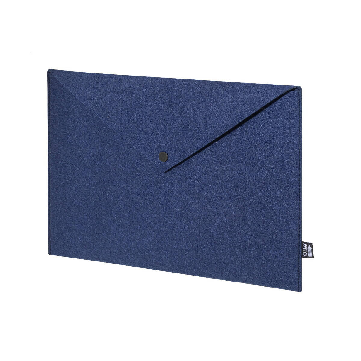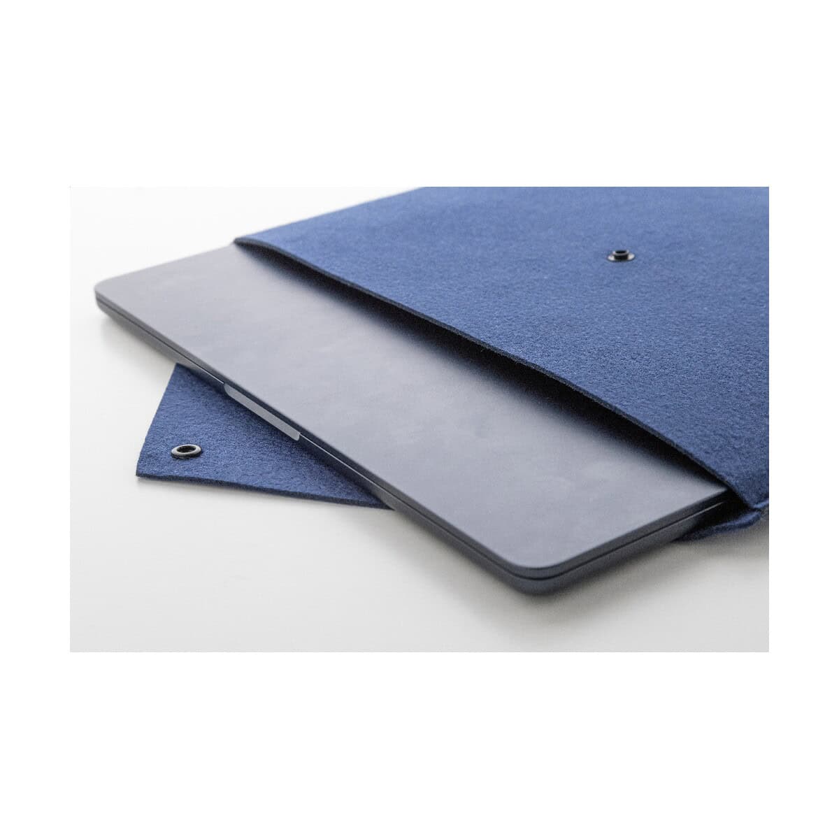 Model pomieści laptopy o przekątnej do 13 cali, chroniąc je dzięki filcowej strukturze i wygodnemu zapięciu na guzik. Wymiary: 330 × 245 mm zapewniają praktyczną przestrzeń także na notatnik A4, słuchawki czy powerbank, a subtelna metka RPET dyskretnie komunikuje proekologiczne podejście marki. Dostępne kolory: ciemnoniebieski, szary, ciemnoszary pozwalają dobrać wariant pasujący do identyfikacji wizualnej.