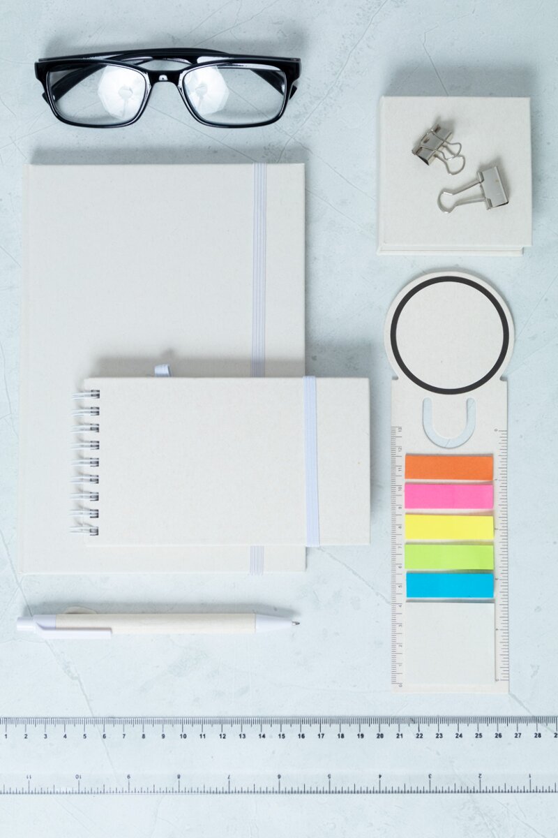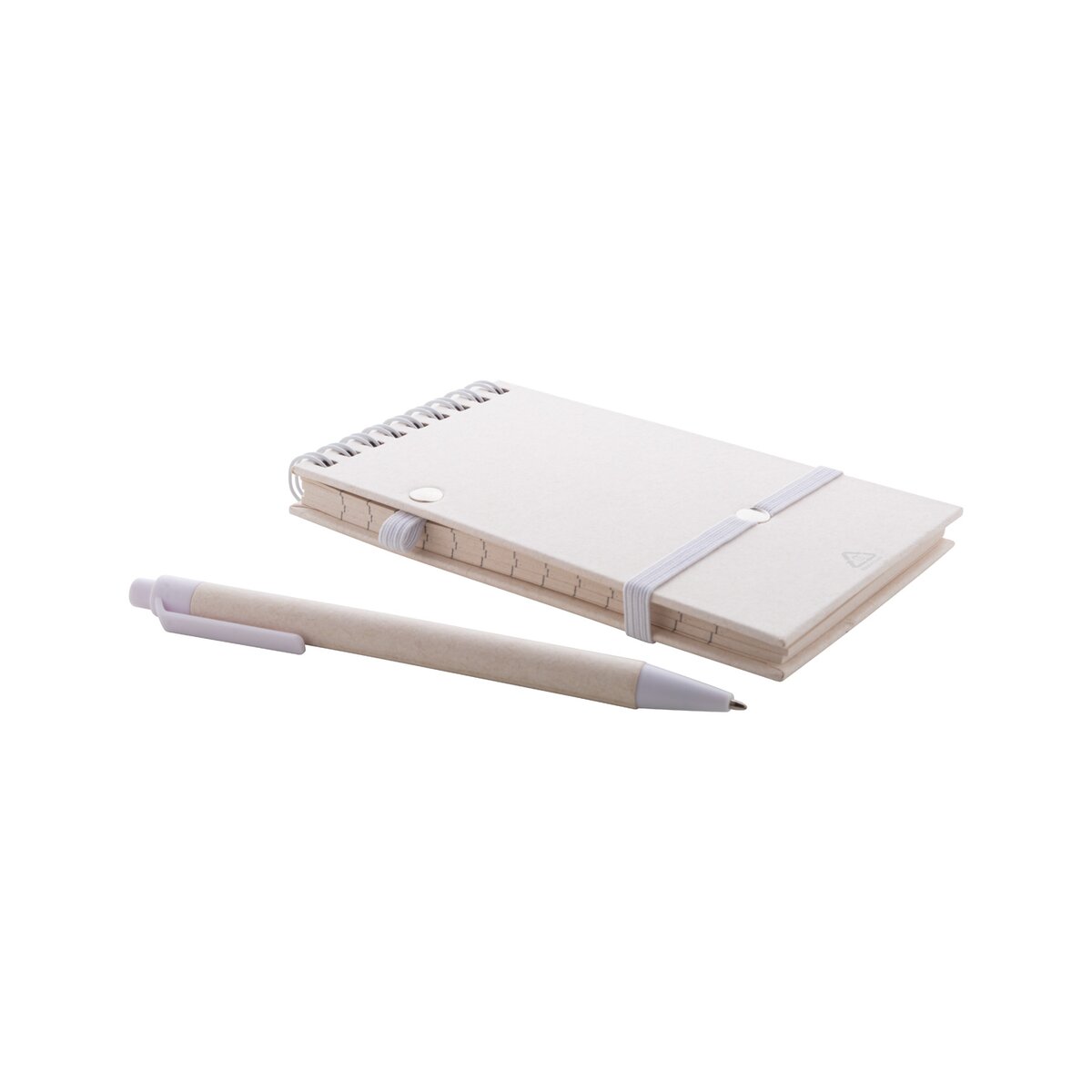 Zintegrowane z notesem akcesoria, jak gumowy pasek, uchwyt na długopis oraz długopis wykonany z recyklingowanego ABS z niebieskim wkładem, podnoszą funkcjonalność tego gadżetu. Kolorowe spirale pozwalają na dopasowanie wyglądu produktu do osobistych preferencji oraz logo firmy, dzięki czemu notes może być wyjątkowym elementem identyfikacji wizualnej przedsiębiorstwa.