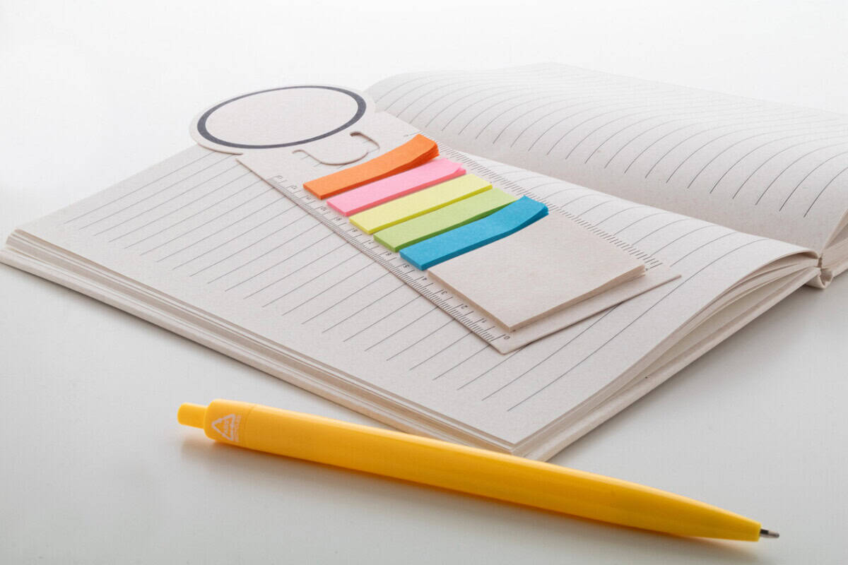 Relact Mark zakładki z kartonów po mleku to nowatorskie połączenie zakładki, linijki oraz zestawu notatek samoprzylepnych, które zamienią codzienne czytanie, planowanie i pracę biurową w czystą przyjemność 😊. Wykonane z kartonu po mleku z recyklingu, wyraźnie podkreślają proekologiczne wartości Twojej marki, stając się znakomitym ambasadorem zrównoważonego rozwoju. Dzięki możliwości umieszczenia logo oraz precyzyjnego nadruku produkt ten jest wymarzonym nośnikiem komunikacji wizualnej w takich branżach jak edukacja, wydawnictwa, księgarnie, biblioteki, a także firmy IT i agencje marketingowe, które chcą wyróżnić się nietuzinkowym, przyjaznym środowisku upominkiem.