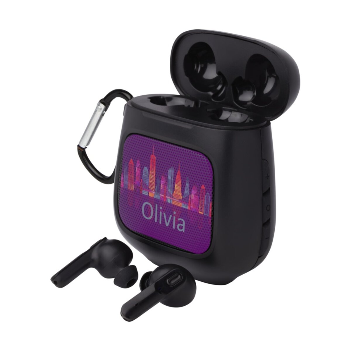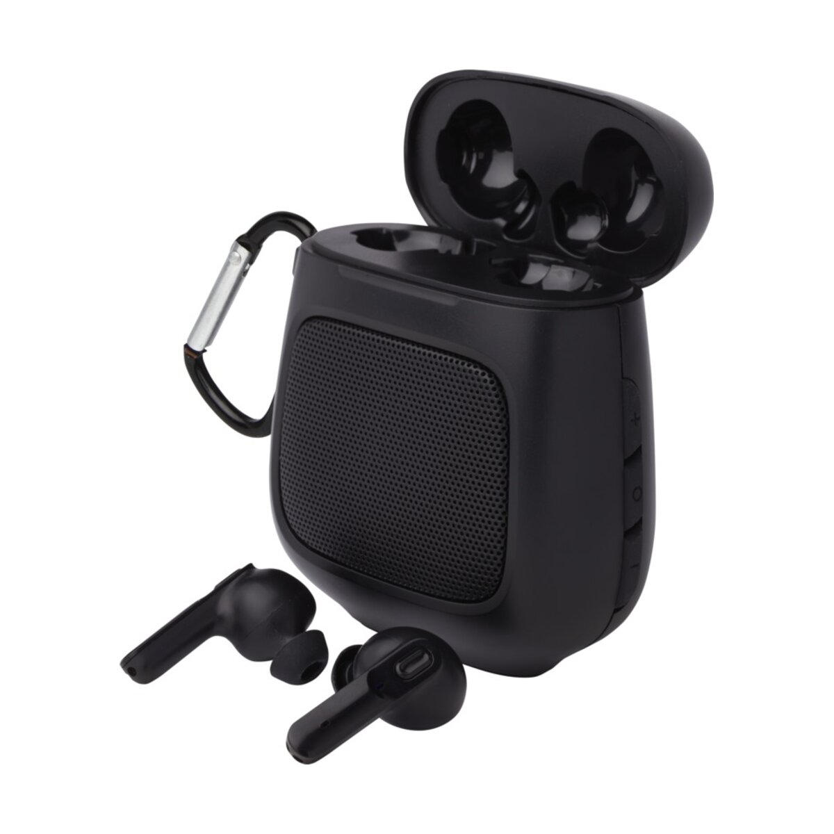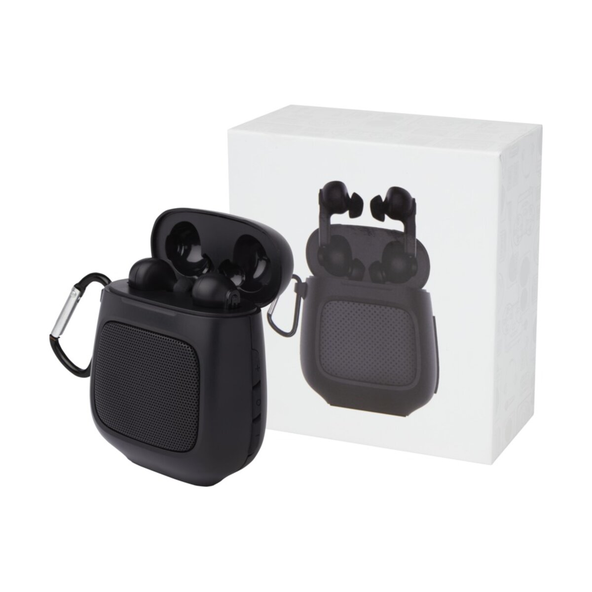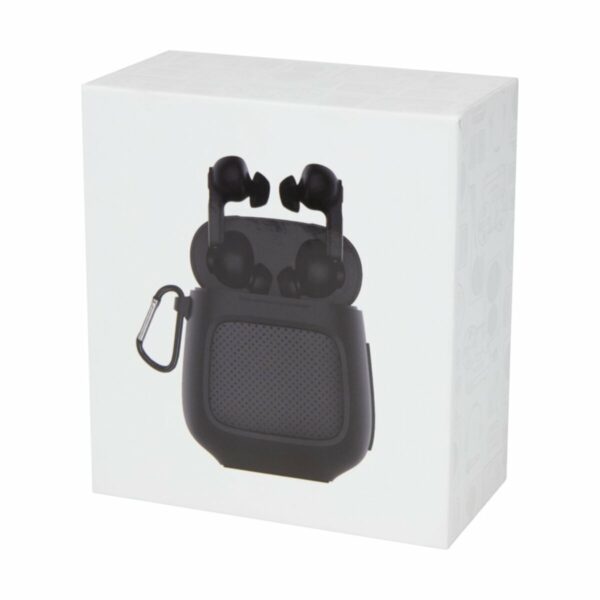 Zestaw Remix to idealny prezent dla osób lubiących muzykę i nowoczesną technologię. Łączy w sobie słuchawki douszne i głośnik Bluetooth® z technologią True Wireless. Słuchawki douszne włączają się samoczynnie po wyjęciu z obudowy i automatycznie synchronizują ze sobą. Obudowa pełni jednocześnie funkcję stacji ładującej dla słuchawek i głośnika Bluetooth®. Słuchawki mogą być używane przez co najmniej 4 godziny przed koniecznością ich ponownego naładowania. Ergonomiczna konstrukcja sprawia, że słuchawki utrzymują się stabilnie w miejscu. W zestawie znajdują się średnie i duże końcówki do uszu, a zasięg protokołu Bluetooth® wynosi do 10 metrów. Całość zapakowana jest w eleganckie pudełko upominkowe.