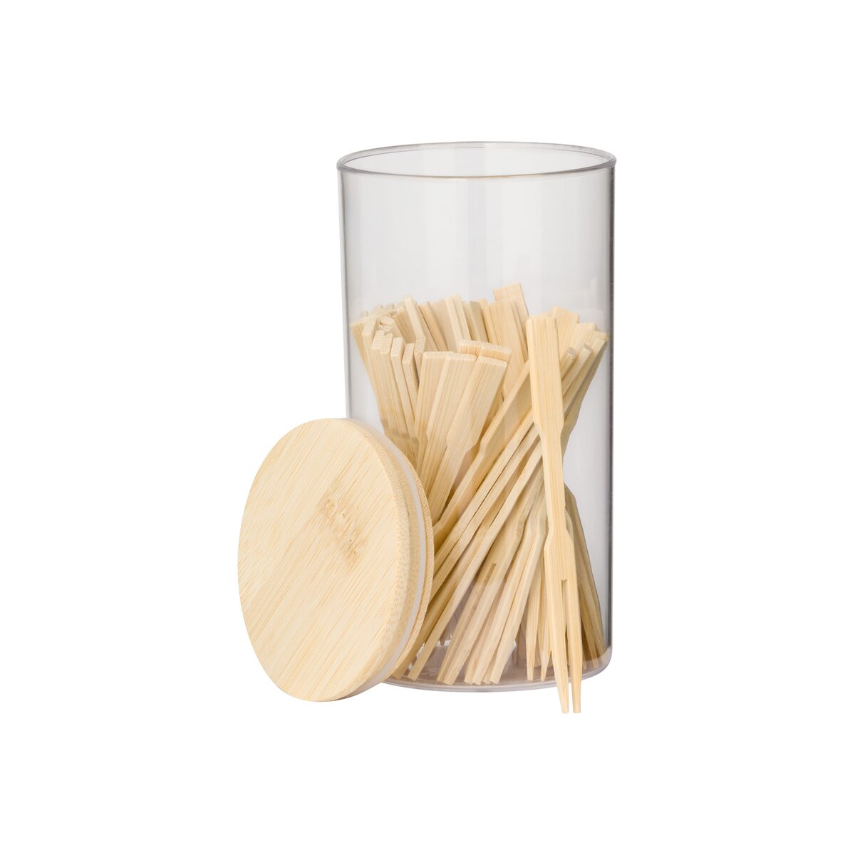 Widelczyki są zapakowane w elegancki, łatwy w przechowywaniu szklany słoik z bambusową pokrywką, co sprawia, że są one zarówno praktyczne, jak i atrakcyjne na każdym stole. Kolor naturalny bambusa w połączeniu z przezroczystością szkła prezentuje się niezwykle estetycznie i pasuje do różnego rodzaju wnętrz oraz dekoracji stołu.