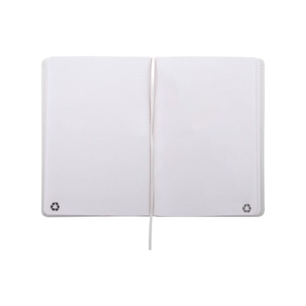Wewnątrz Repuk Blank A5 notes RPU skrywa 100 gładkich kartek wykonanych z papieru z recyklingu, zapewniających komfort pisania i notowania. Praktyczna, dopasowana kolorystycznie zakładka oraz elastyczna gumka zwiększają funkcjonalność notesu, ułatwiając organizację notatek i zapobiegając ich przypadkowemu wysunięciu się.