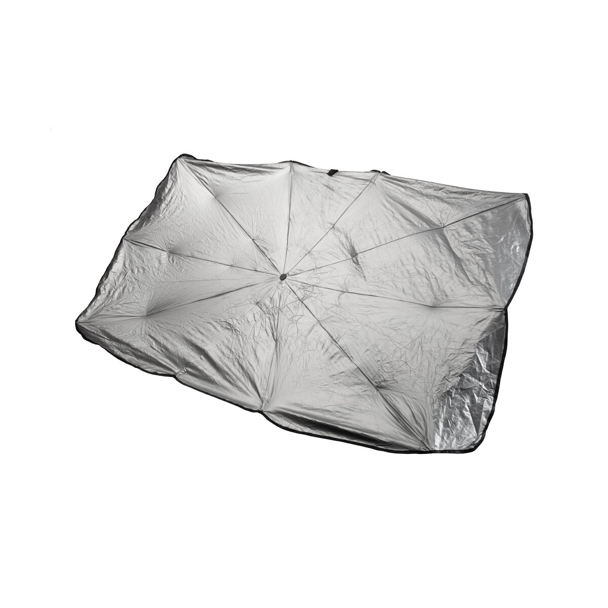 Ten niezastąpiony dodatek wykonany jest z wysokiej jakości materiałów: metalowej ramy oraz poliestrowego pokrowca, co gwarantuje długotrwałe użytkowanie. Świetnie sprawdzi się jako ochrona przed intensywnym nasłonecznieniem wnętrza pojazdu, zapobiegając jego nadmiernemu nagrzewaniu się. Rozmiar parasolki to 800×1360 mm, dzięki czemu pasuje do większości przednich szyb samochodowych.