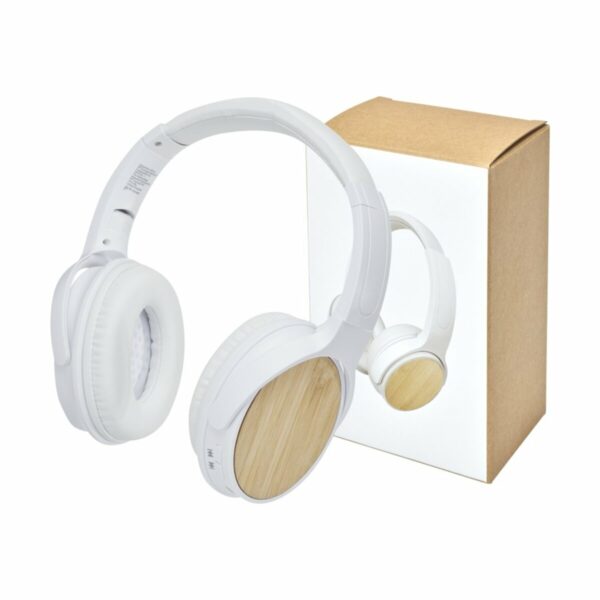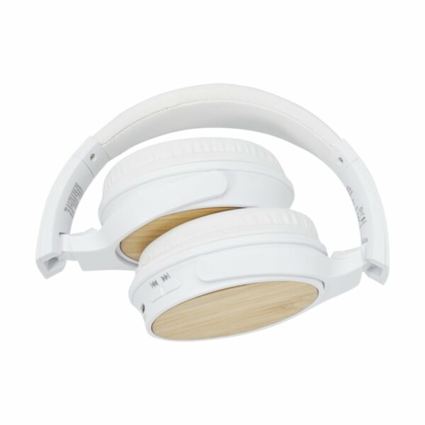 Nasze wygodne, lekkie i wytrzymałe słuchawki bezprzewodowe wyposażone są w technologię Bluetooth® 5.0 zapewniającą stabilne połączenie oraz wbudowany mikrofon do odbierania rozmów telefonicznych. Są składane i ich konstrukcja nauszna zapewnia doskonałe wrażenia dźwiękowe. Wbudowany akumulator litowy o pojemności 200 mAh zapewnia czas odtwarzania do 4 godzin, a jego pełne naładowanie możliwe jest w ciągu 2 godzin. Zasięg działania słuchawek wynosi 10 metrów. Ich stylową powierzchnię stanowi bambus. Słuchawki są dostarczane w pudełku upominkowym wraz z instrukcją obsługi, oba te przedmioty wykonane są z materiałów ekologicznych.
