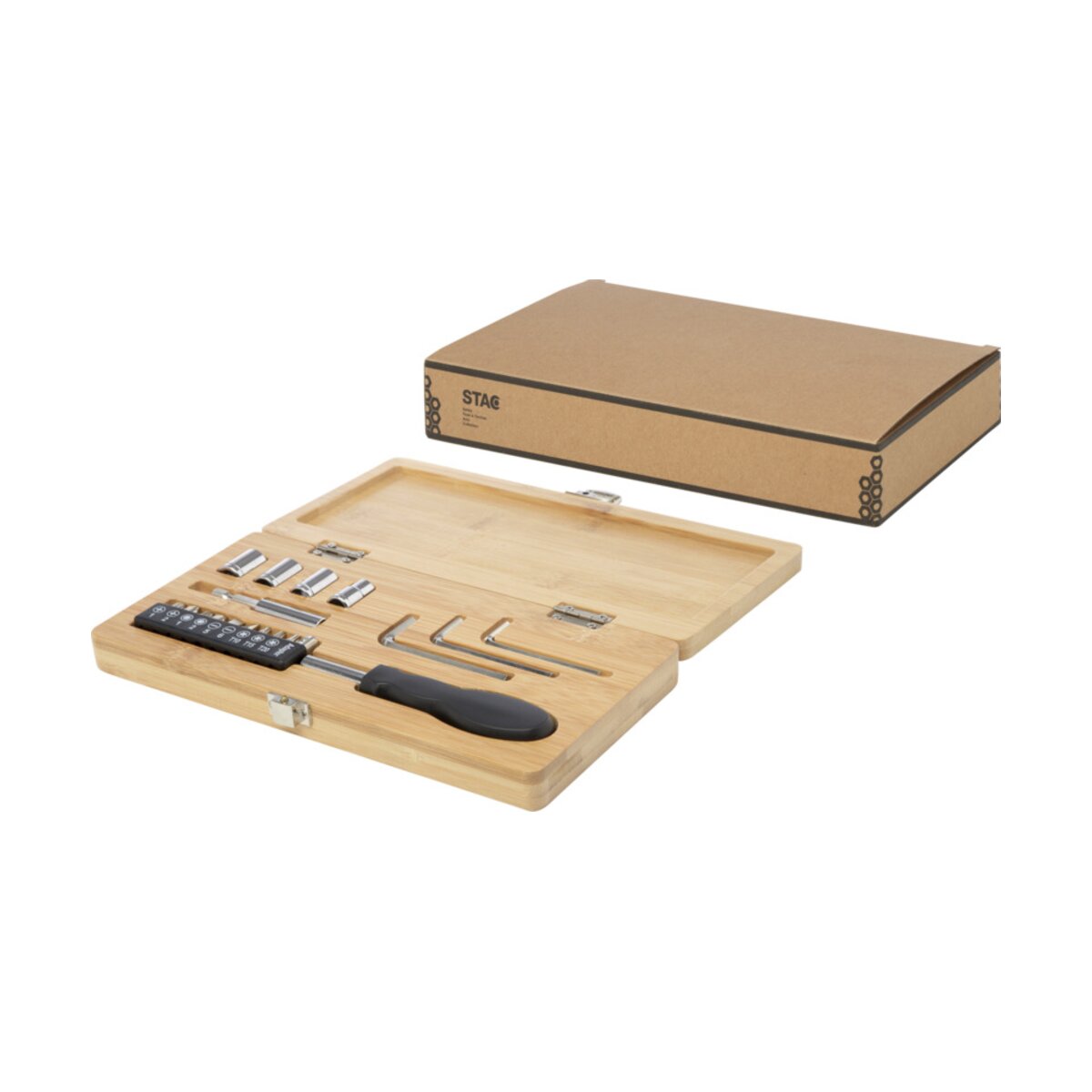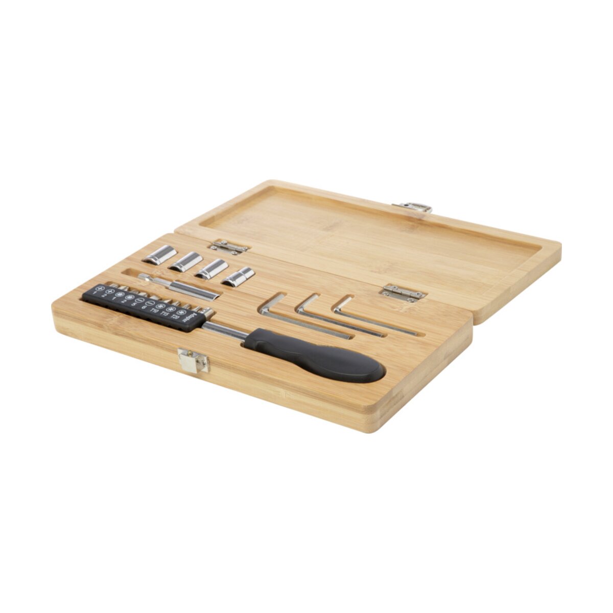 Doświadcz idealnego połączenia trwałości i funkcjonalności dzięki zestawowi narzędzi Rivet. Ta starannie zaprojektowana skrzynka narzędziowa jest nie tylko atrakcyjna wizualnie, ale także przyjazna dla środowiska, bez uszczerbku dla jakości i wydajności. Naturalna wytrzymałość i trwałość bambusa zapewnia ochronę narzędzi przez wiele lat. Wewnątrz skrzynki znajdziesz zestaw 19 niezbędnych narzędzi wykonanych ze stali węglowej i tworzyw sztucznych pochodzących z recyklingu: 1 długi uchwyt przegubowy, 4 wysokiej jakości nasadki do różnych zastosowań, 1 przedłużka do trudno dostępnych miejsc, 10 precyzyjnych końcówek wkrętakowych do każdego zadania i 3 klucze sześciokątne do montażu mebli. Niezależnie od tego, czy jesteś entuzjastą majsterkowania, czy profesjonalnym rzemieślnikiem, narzędzia te zostały zaprojektowane tak, aby działały niezawodnie i intensywne użytkowanie. Ponieważ bambus jest produktem naturalnym, mogą występować niewielkie różnice w kolorze i rozmiarze, które mogą mieć wpływ na ostateczny wygląd nadruku. Zapakowany w pudełko upominkowe STAC pochodzące ze zrównoważonych źródeł.