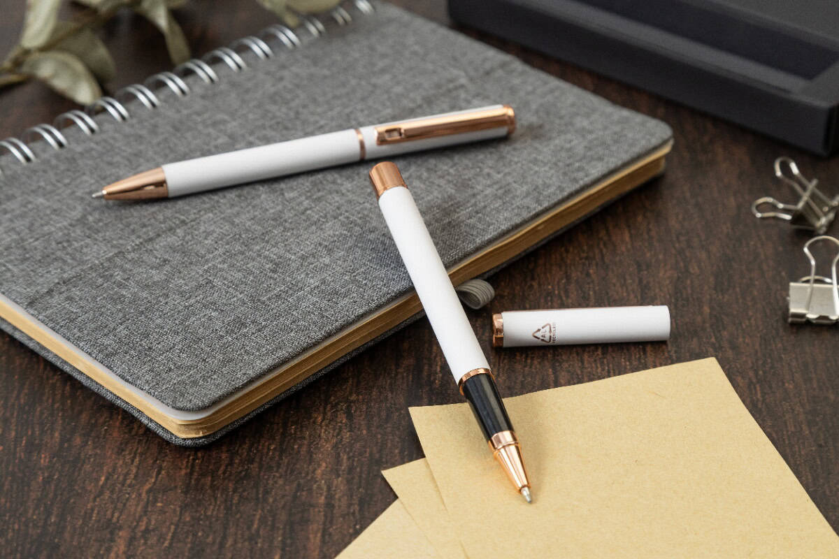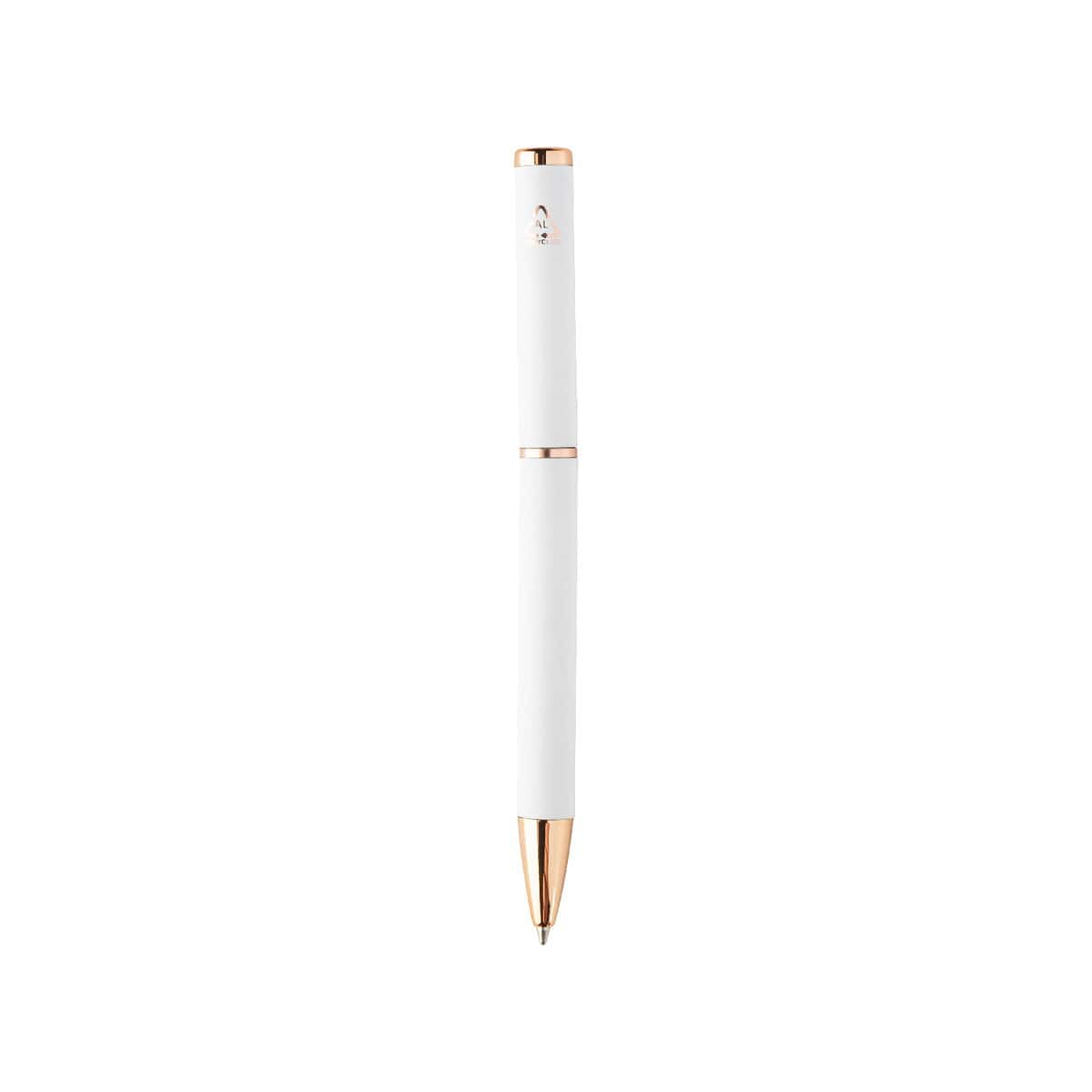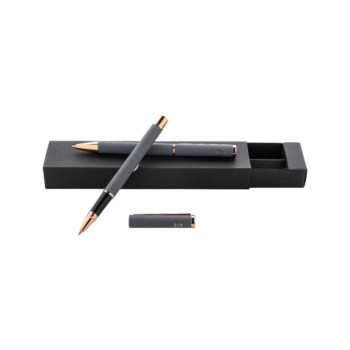 Rossy zestaw piśmienniczy to wyrafinowany duet, który łączy elegancję z troską o planetę. W skład kompletu wchodzi długopis kulkowy oraz cienkopis wykonane z aluminium pochodzącego z recyklingu, co czyni go nie tylko stylowym, lecz także przyjaznym środowisku. Oba przybory posiadają gumowane wykończenie zapewniające pewny chwyt, a subtelne detale w odcieniu różowego złota dodają im luksusowego charakteru. Dzięki specjalnej powłoce dedykowanej grawerowi laserowemu w identycznym, różowozłotym kolorze, Rossy zestaw piśmienniczy prezentuje się wyjątkowo ekskluzywnie, zwłaszcza gdy umieścisz na nim swoje logo lub spersonalizowany nadruk. 🙂