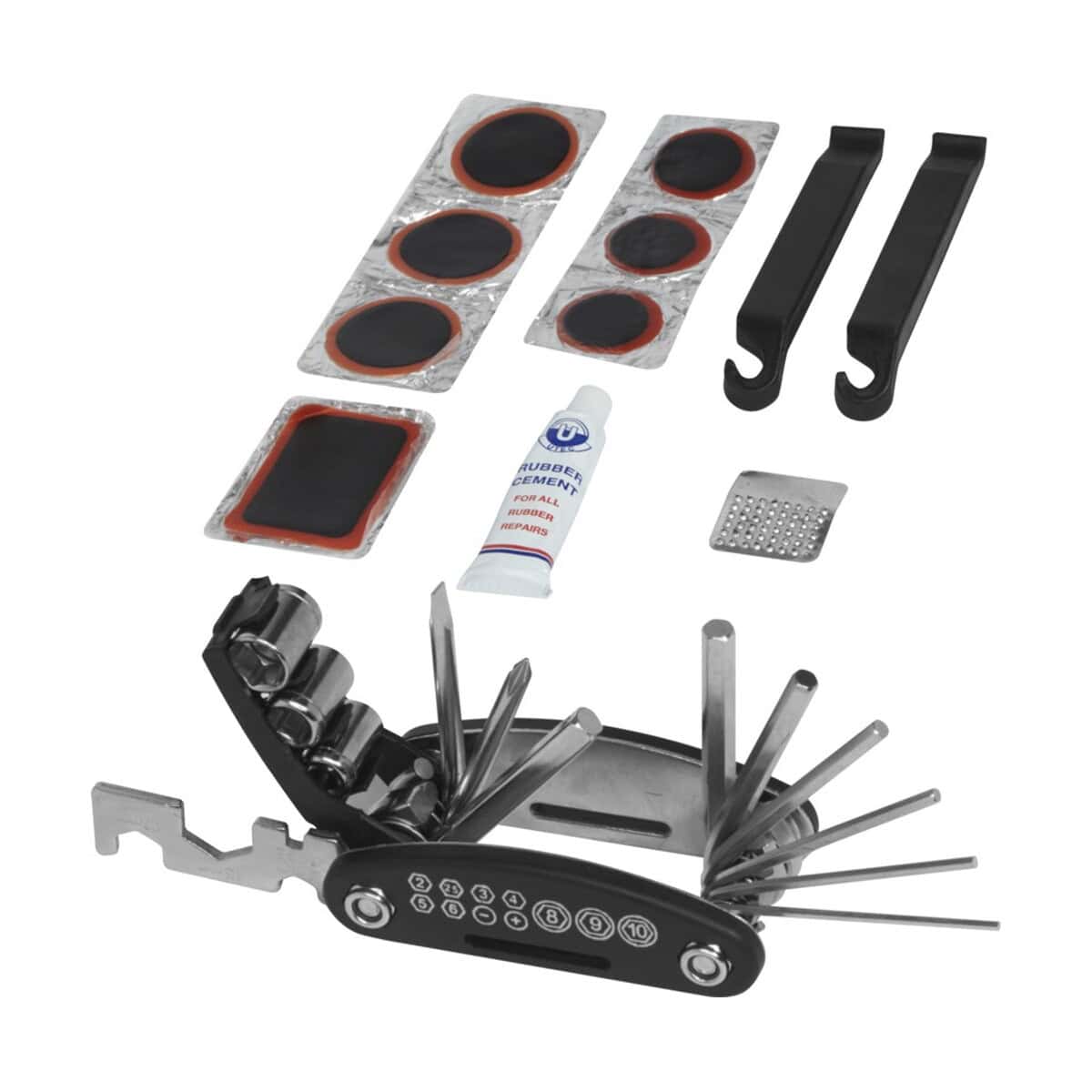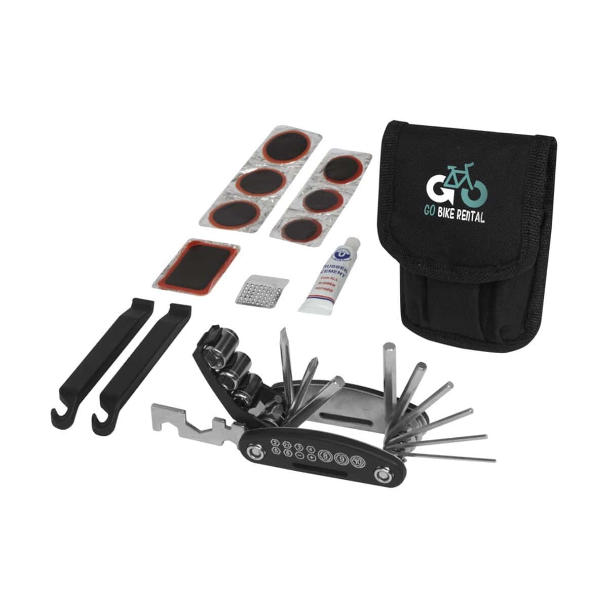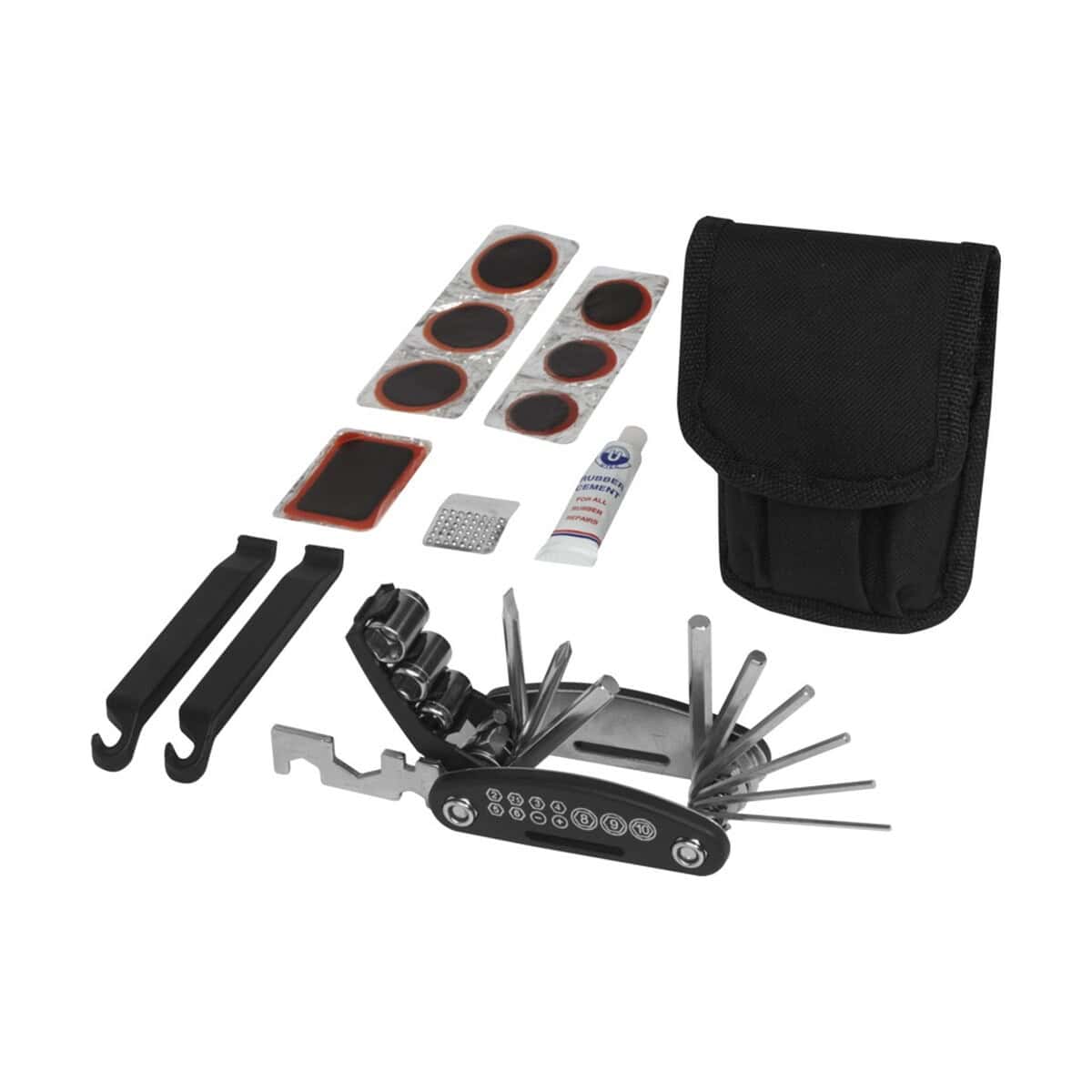 Rowerowy zestaw naprawczy Wheelie to praktyczny, a zarazem stylowy gadżet przygotowany specjalnie dla Twojej firmy, która chce wyróżnić się na trasach i w miejskiej dżungli 😊. W poręcznym etui z wytrzymałego 600D Poliester umieszczono aż 15 starannie dobranych elementów: 2 poziomice do wyważania kół, tarnik, klej oraz łatki, dzięki czemu każdy rowerzysta szybko poradzi sobie z nagłą usterką. Kieszonkowy format – Wymiary: 9 × 4,5 × 12 cm i zaledwie Waga: 368 g – sprawia, że łatwo przypiąć całość do ramy za pomocą 2 pasków na rzep. Odblaskowa obwoluta zwiększa bezpieczeństwo po zmroku, a czarny Kolor pasuje do większości stylów rowerowych.