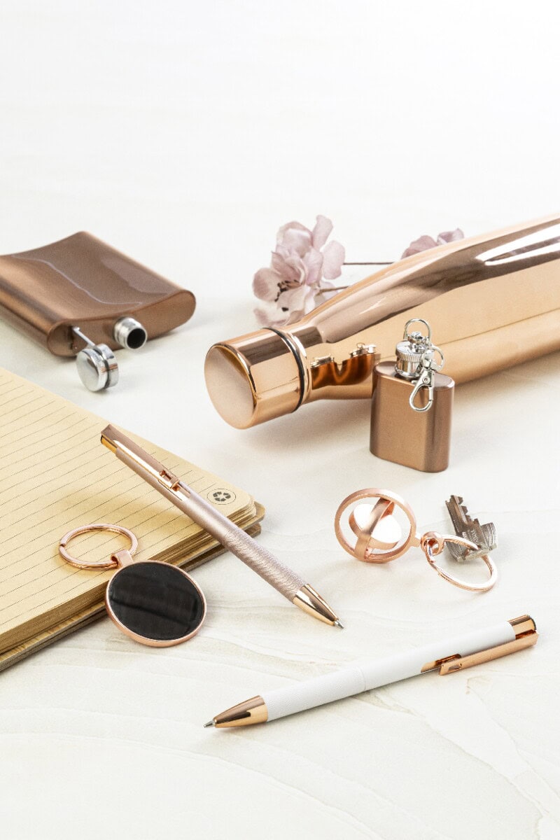 Ten niezawodny, funkcjonalny i w pełni personalizowany artykuł piśmienniczy jest wyśmienity jako upominek powitalny dla nowych pracowników, nagroda w programach lojalnościowych lub element pakietów PR. Zgrabna forma pozwala na dołączenie do notesów, plannerów czy zestawów VIP, a lustrzane grawerowanie w kolorze różowego złota nadaje mu ekskluzywny charakter, który przyciąga spojrzenia. Jeśli szukasz solidnego, pięknego i eco-friendly rozwiązania dla Twojej firmy, które wyróżni się w morzu konkurencyjnych produktów, ten gadżet okaże się wprost znakomitym wyborem.