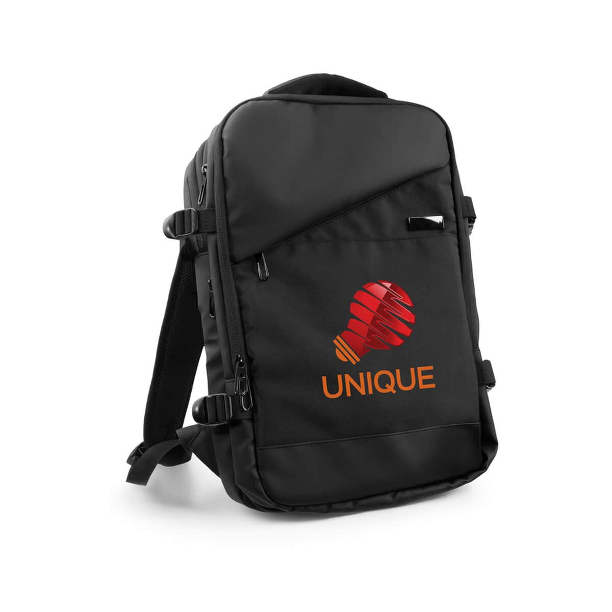 Rozszerzalny plecak Exclusive Collection | Aicha to prawdziwy majstersztyk wśród kategorii „Plecaki z logo” oraz „Torby na laptopa z logo”. Jego elegancka, głęboka czerń i minimalistyczne linie sprawiają, że staje się nie tylko praktycznym akcesorium, ale też stylowym dodatkiem, który wyróżni Twój brand na tle konkurencji 🙂. Dzięki starannie zaprojektowanym powierzchniom bez trudu naniesiesz wyrazisty nadruk z identyfikacją wizualną, a sam plecak zamieni się w mobilny nośnik Twojej marki. Jeśli szukasz produktu wprost stworzonych dla Twojej firmy, który będzie zarówno funkcjonalny, jak i efektowny, właśnie go znalazłeś!