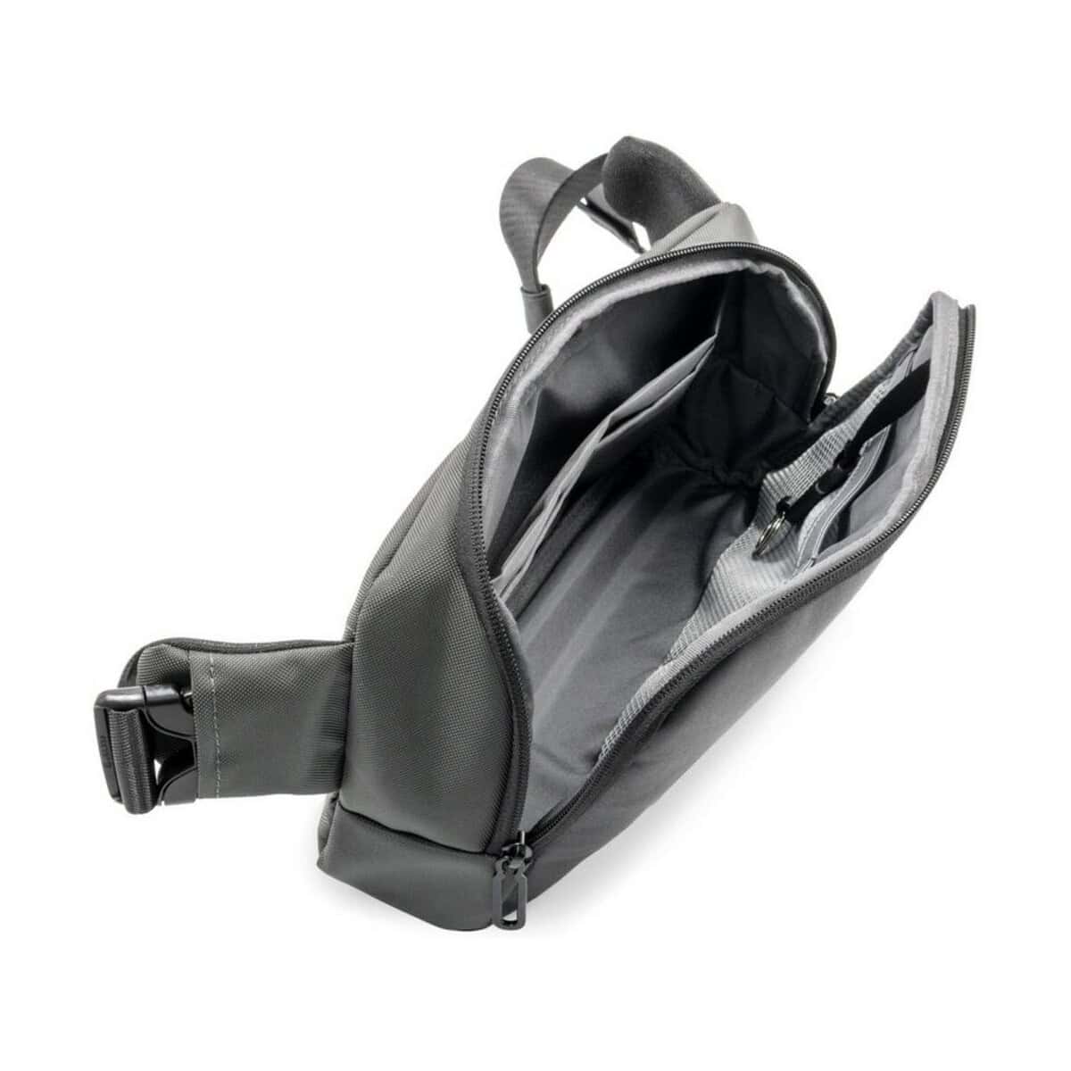 Do kluczowych atutów należą: warstwa wodo- i plamoodporna, podszewka chroniąca przed wstrząsami oraz zapięcie boczne, które pozwala na błyskawiczne zakładanie i zdejmowanie nerki. W centralnej części znajduje się kieszeń główna zapinana na zamek, a w zestawie producent dołącza praktyczny brelok do kluczy – detale, które razem podkreślają, że to funkcjonalny gadżet o nowoczesnym charakterze. Całość waży zaledwie 272 g przy wymiarach 49 × 35 × 14 cm, co sprawia, że prawie nie odczujesz jej obecności podczas biegu do metra czy spaceru po targach.