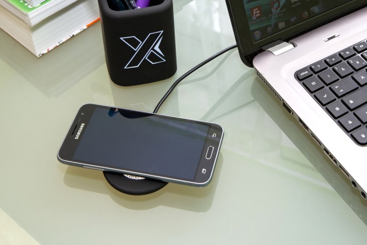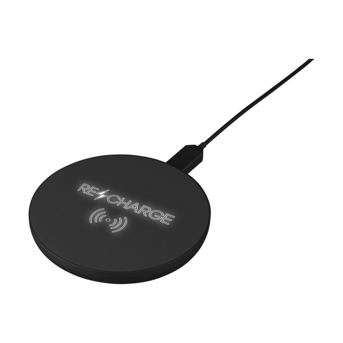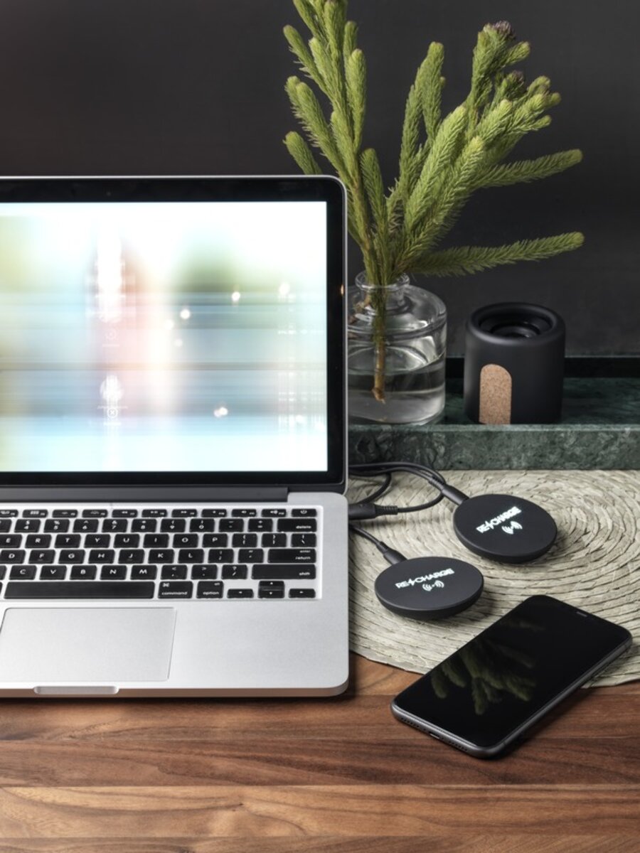 Ta gumowa, bezprzewodowa stacja ładująca o mocy 10 W wygląda stylowo i jest wyposażona w podświetlane logo, które idealnie uzupełnia jej wygląd. Kabel ładujący wykonany jest z trwałego plastiku z recyclingu, zapewniając bezpieczeństwo i komfort użytkowania. Produkt został zapakowany w czarne, eleganckie pudełko z magnetycznym zamknięciem, które nada się idealnie jako prezent. Produkt posiada patent Europejskiego Urzędu ds. Własności Intelektualnej (EUIPO).