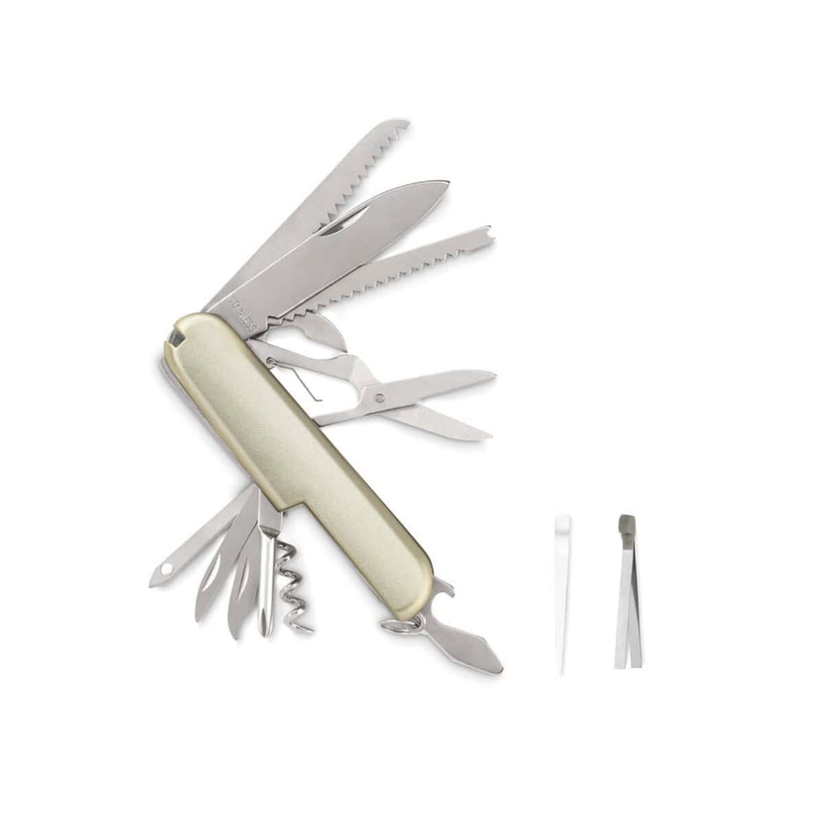 Scyzoryk. 13 funkcji MCGREGOR to kompaktowy, a jednocześnie niezwykle wszechstronny gadżet, który sprawdzi się wszędzie tam, gdzie liczy się gotowość do działania – od biura po górski szlak. Jego stalowe ostrza i obudowa ABS gwarantują trwałość, a przy wymiarach 8,5 × 2,3 × 1,8 cm oraz wadze zaledwie 0,107 kg zmieści się w każdej kieszeni lub torbie. 😊 Srebrny kolor i eleganckie linie czynią go atrakcyjnym prezentem reklamowym, a gładka powierzchnia pozwala na precyzyjny nadruk lub logo – dzięki temu zawsze będzie dyskretnie promował markę dla Twojej firmy.