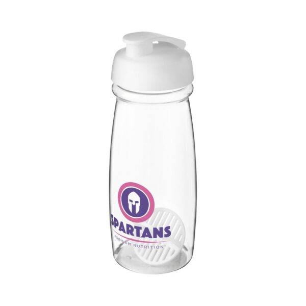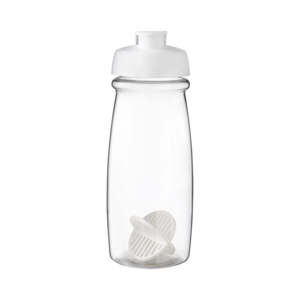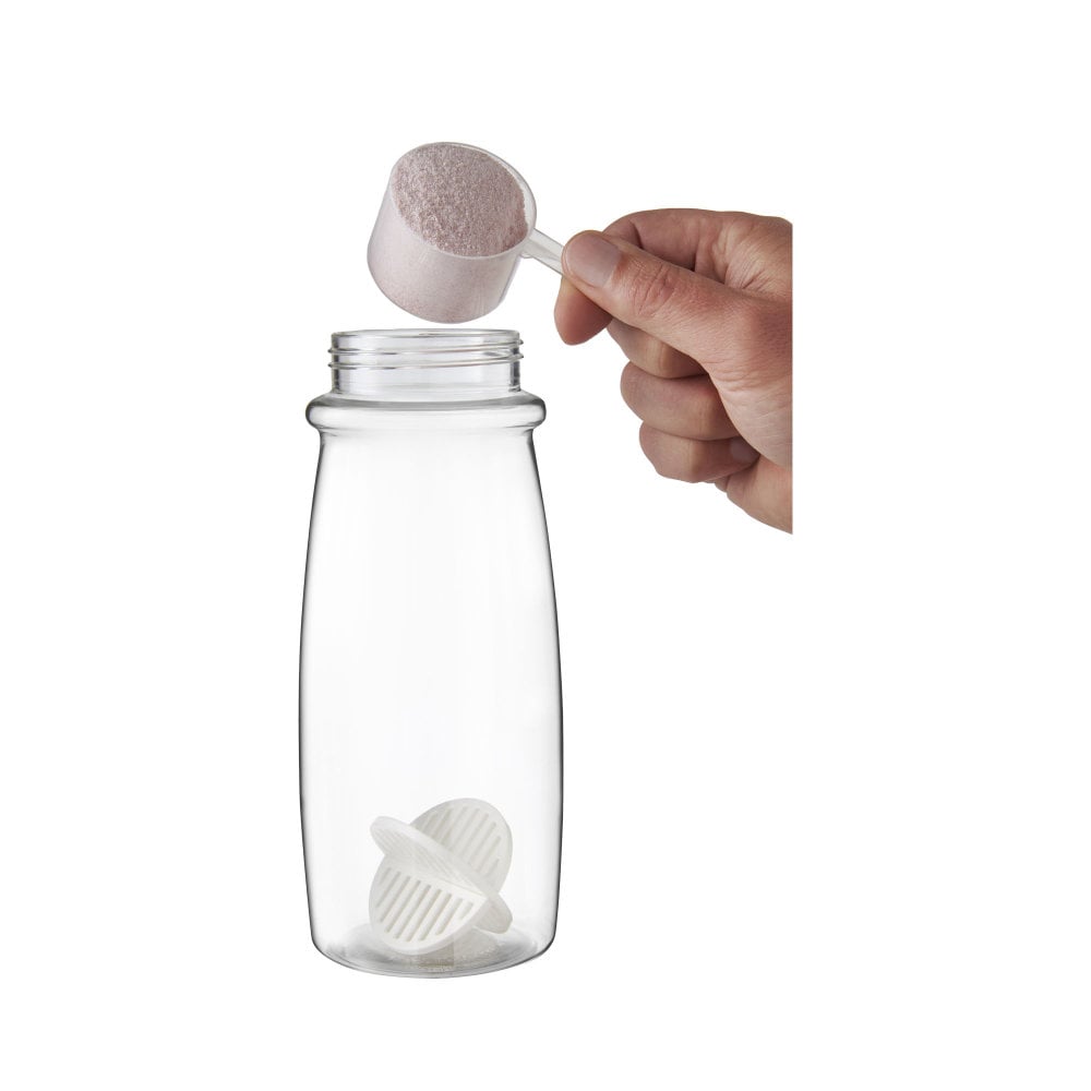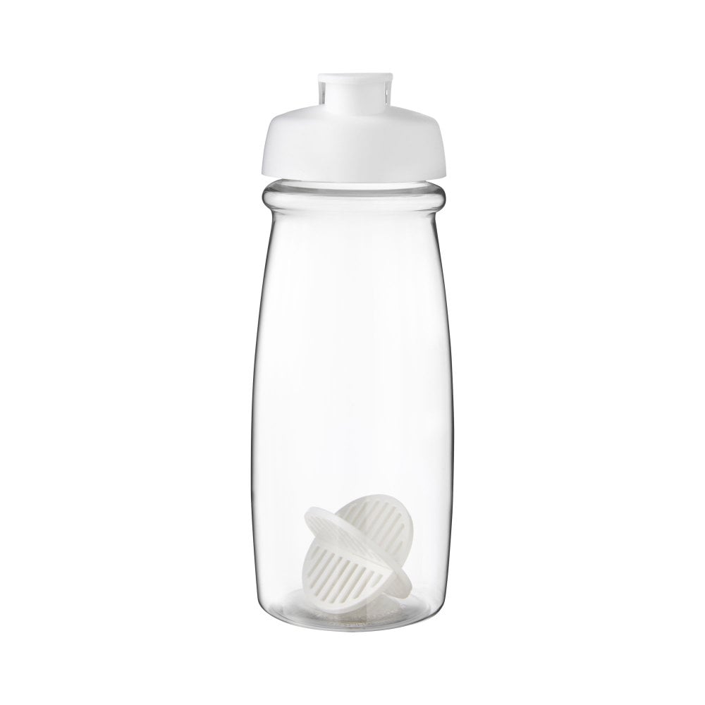 Ten świetny bidon z shakerem to idealna opcja dla osób, które lubią mieszać koktajle białkowe. Wyprodukowany w Wielkiej Brytanii posiada odporną na rozlania pokrywę z klapką oraz zakrzywioną konstrukcję butelki. Jego pojemność wynosi 600 ml, a do tego jest zapakowany w torbę, którą można kompostować w domu. To doskonały wybór dla osób aktywnych, które cenią sobie wygodę i bezpieczeństwo.