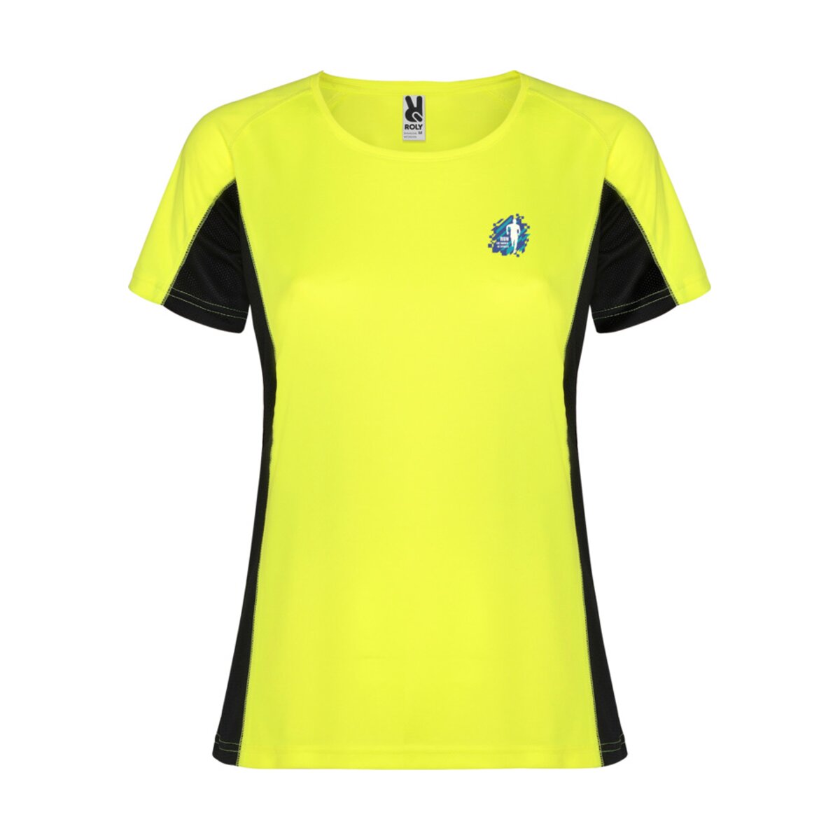 Techniczny i oddychający materiał. Połączenie dwóch materiałów poliestrowych: Główny materiał o splocie Birdseye, panele boczne i wewnętrzny rękaw z mikroperforowanego materiału. Okrągły dekolt z wewnętrznymi wzmocnionymi krytymi szwami. Usuwalna etykieta.