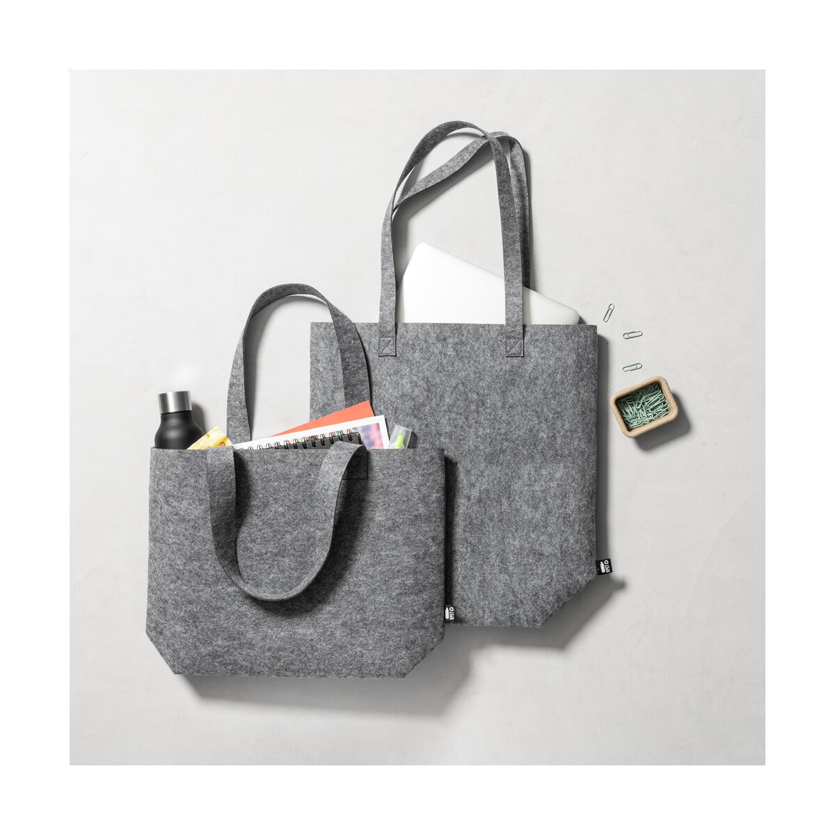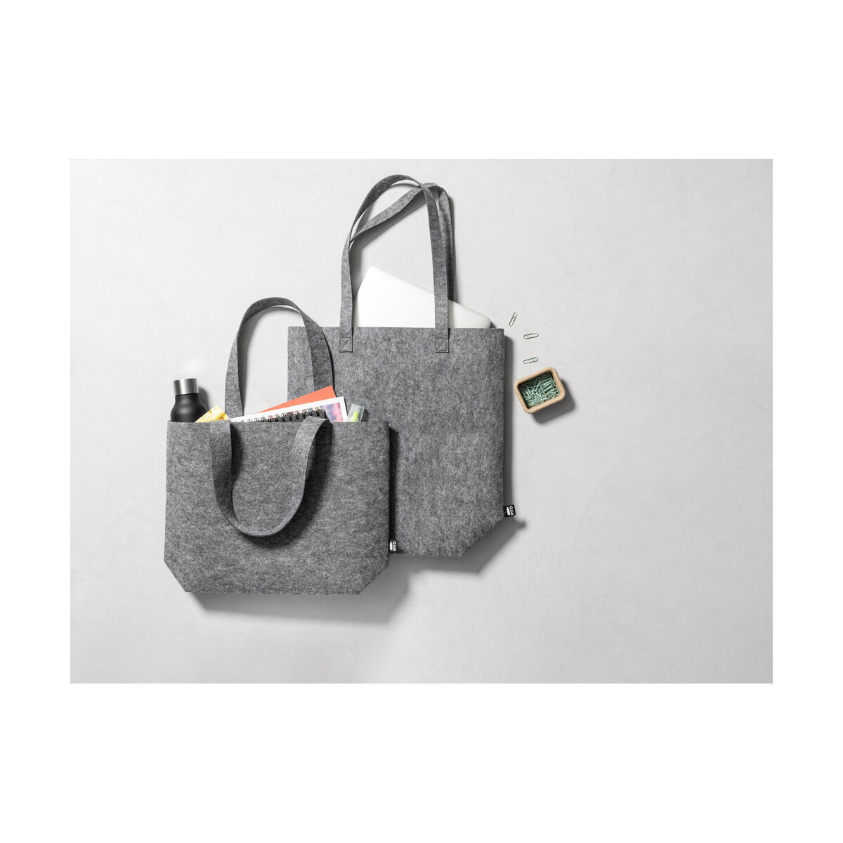 Wymiary: 400×420×150 mm sprawiają, że pomieścisz w niej zarówno codzienne zakupy spożywcze, jak i książki czy ubrania. Przy wadze: 140 g torba jest lekka niczym piórko, a jednocześnie wytrzymała. Materiał: Filc PET z recyklingu gwarantuje odporność na przetarcia i łatwą konserwację, a kolor: szary pasuje do niemal każdej stylizacji. To doskonały wybór dla Twojej firmy, jeśli zależy Ci na funkcjonalnym, estetycznym i przyjaznym środowisku materiale, który przez długi czas będzie budował pozytywny wizerunek Twojej marki.