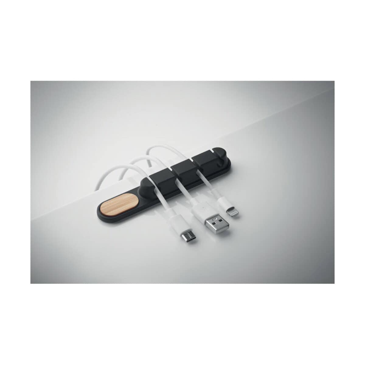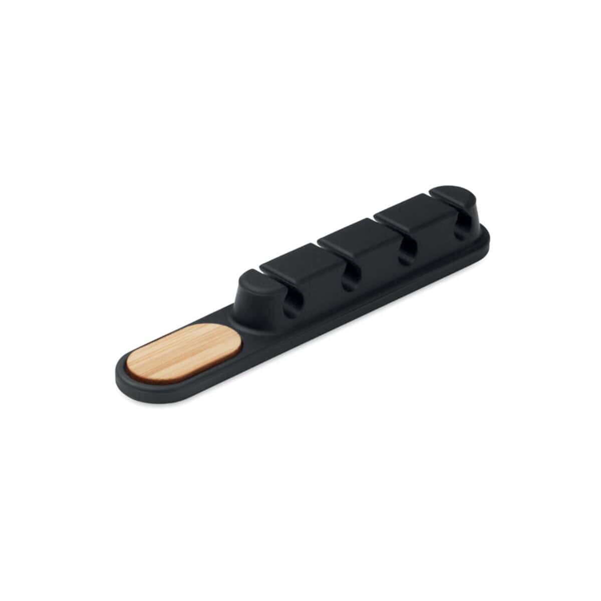 Silikonowy organizer kabli ORDER to niewielki, ale niezwykle funkcjonalny gadżet, który wprowadzi ład w plątaninę przewodów na każdym biurku. Wykonany z elastycznego, przyjemnego w dotyku silicone i wykończony eleganckim naturalnym bambusem, łączy nowoczesny styl z nutą ekologii. Jego kompaktowa, owalna forma o wymiarach 11 × 2 × 1,5 cm oraz lekka waga 25 g sprawiają, że możesz zabrać go wszędzie – do biura, domu, a nawet w podróż służbową. Co ważne, gładka powierzchnia bambusa to doskonałe miejsce na logo oraz precyzyjny nadruk, dzięki czemu staje się pełnoprawnym nośnikiem przekazu reklamowego dla Twojej firmy 😊.