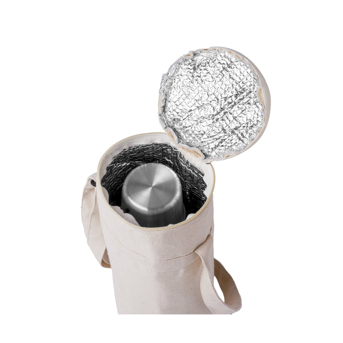 Zaprezentuj swój napój w doskonałym stylu i temperaturze dzięki Sirkin torba termiczna na butelki. Ta wyjątkowa torba, wykonana z ekologicznej bawełny pochodzącej z recyklingu, nie tylko chroni środowisko, ale także utrzymuje Twoje napoje w optymalnej temperaturze dzięki aluminiowej wyściółce wnętrza. Kolor naturalny nadaje produktowi elegancki i uniwersalny wygląd, pasujący do każdego stylu i okazji.