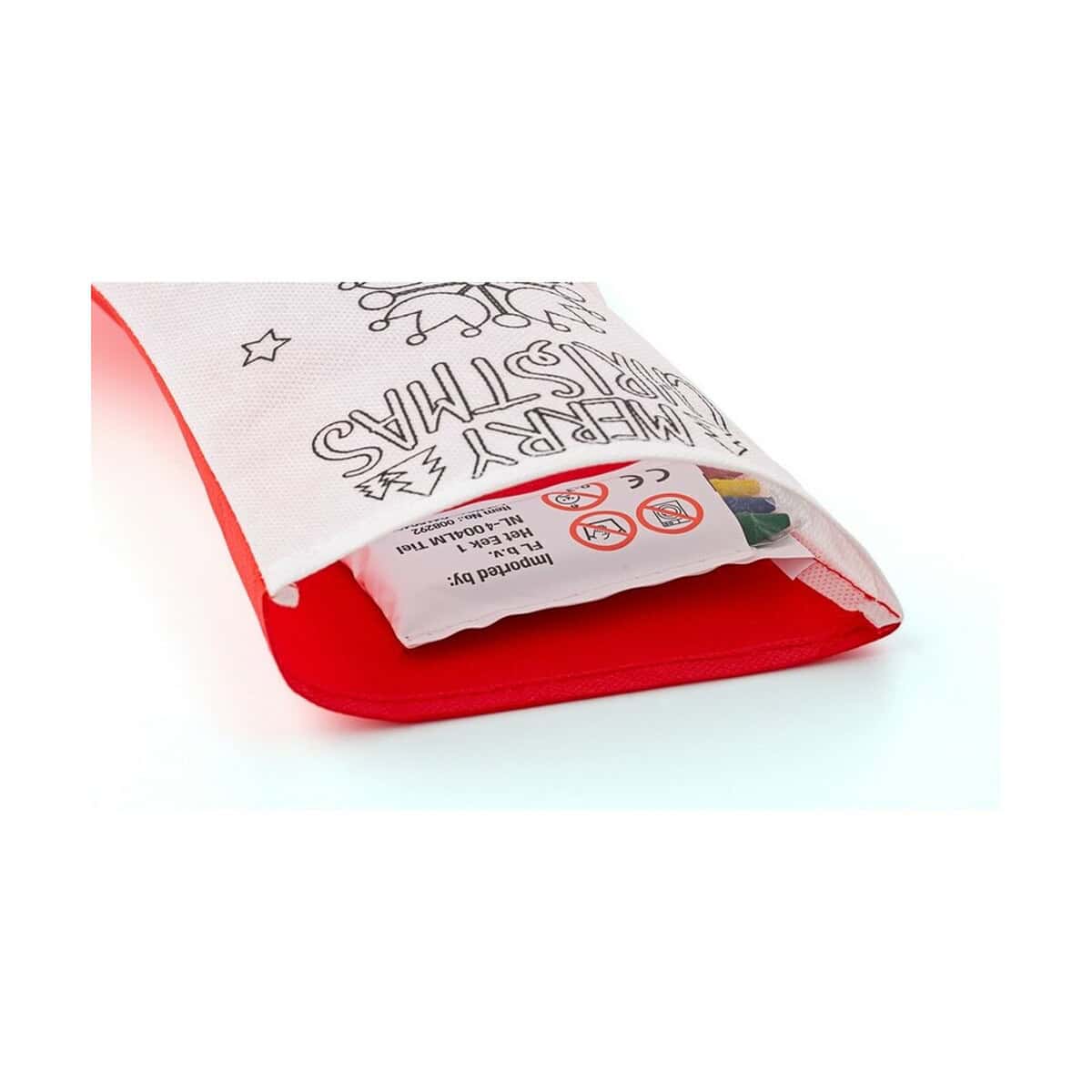 Skarpeta świąteczna do kolorowania, kredki to znakomity sposób, aby wprowadzić ciepły, kreatywny klimat do zimowych kampanii promocyjnych. Ten wyjątkowy gadżet łączy w sobie magię świąt z przyjemnością tworzenia własnych dekoracji – wystarczy chwycić jedną z czterech dołączonych kredek świecowych, by nadać skarpecie niepowtarzalny charakter. Dzięki powierzchni wykonanej z materiału non-woven 80 g/m² skarpeta świetnie przyjmuje nadruk, co czyni ją doskonałym nośnikiem firmowego logo. 🎨