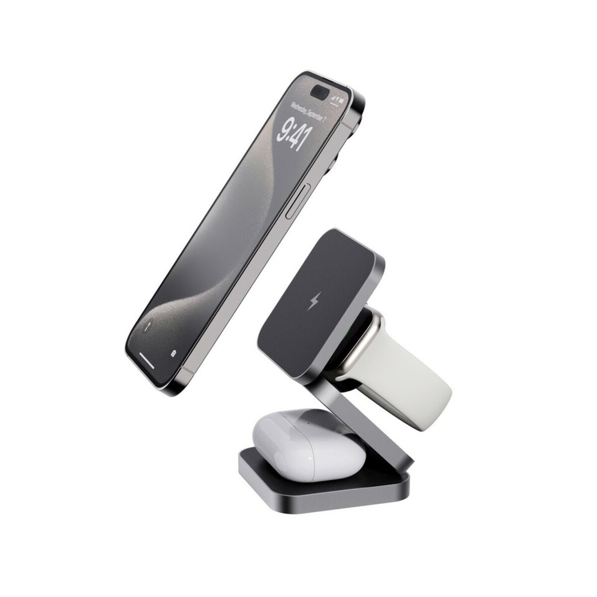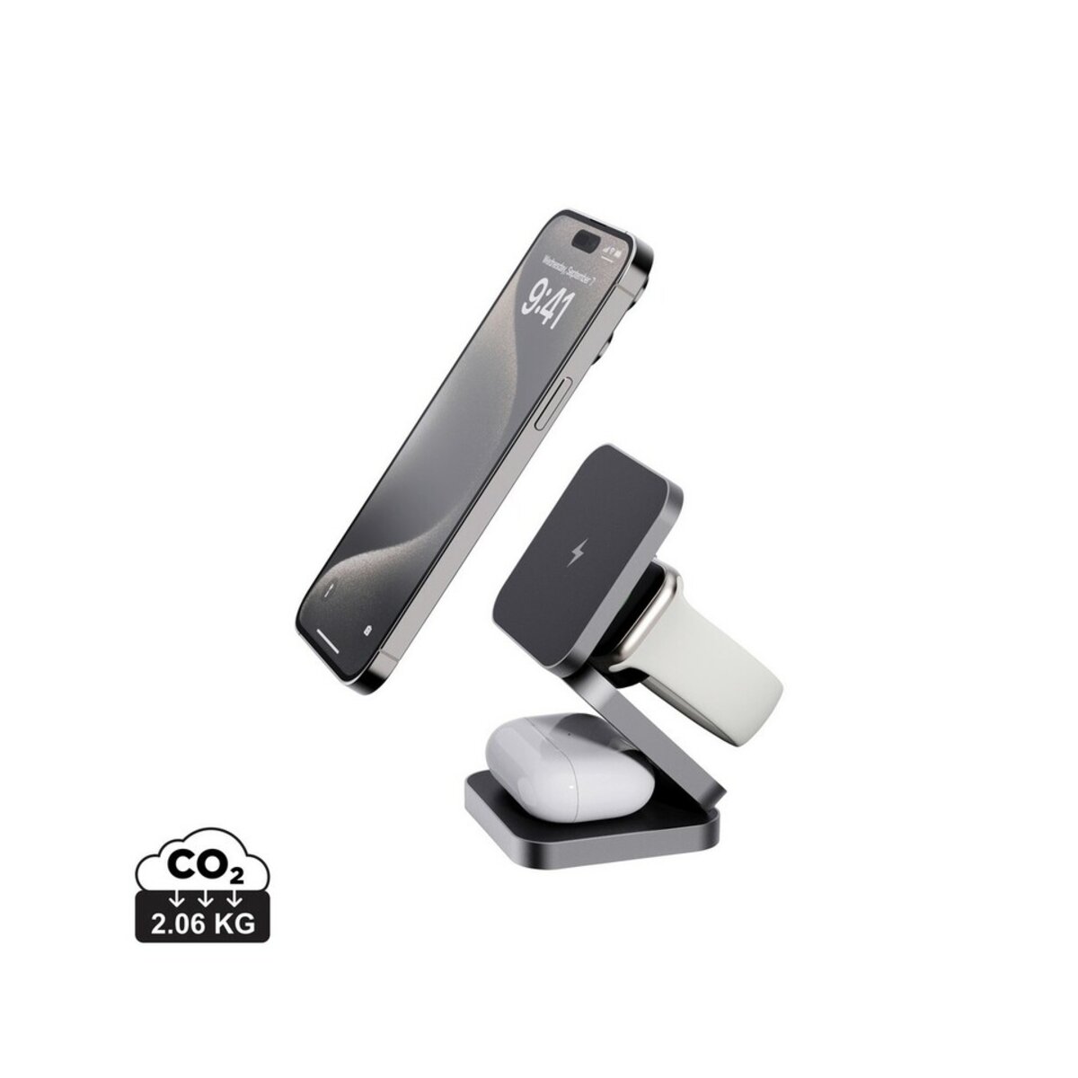 Poznaj Składaną ładowarkę 3 w 1 15W Terra – innowacyjne rozwiązanie dla wszystkich, którzy cenią sobie wygodę i ekologię. Ta wszechstronna ładowarka pozwala na bezprzewodowe ładowanie trzech urządzeń jednocześnie: smartfona, smartwatcha oraz słuchawek. Dzięki magnetycznemu mechanizmowi, urządzenie efektywnie przekazuje energię bez używania kabli, a składana konstrukcja umożliwia łatwe przechowywanie i transport.