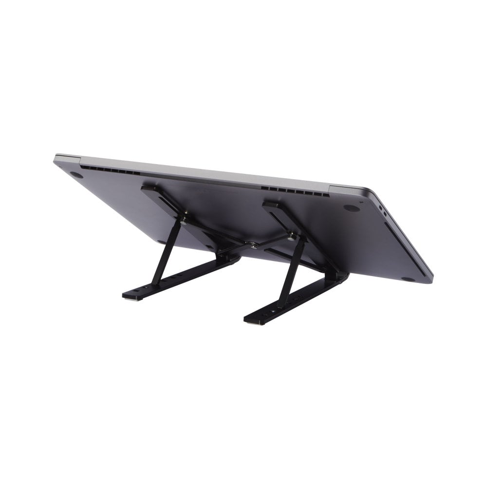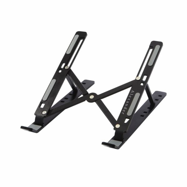 Uniwersalna, kompaktowa i składana podstawka pod laptopa wykonana ze stopu aluminium to doskonała opcja dla osób, które często pracują z laptopem w różnych miejscach. Podstawka może być ustawiona pod 7 różnymi kątami dla zapewnienia optymalnej ergonomicznej postawy. Składanie i rozkładanie stojaka jest szybkie i łatwe, dzięki czemu można to zrobić w kilka sekund. Dno ma gumowe paski, które zabezpieczają przed przesuwaniem. Dodatkowo, jest wyposażona w pokrowiec, dzięki któremu można łatwo ją przenosić. Do tego, zestaw jest dostarczany w wysokiej jakości pudełku z papieru Kraft z kolorową naklejką.