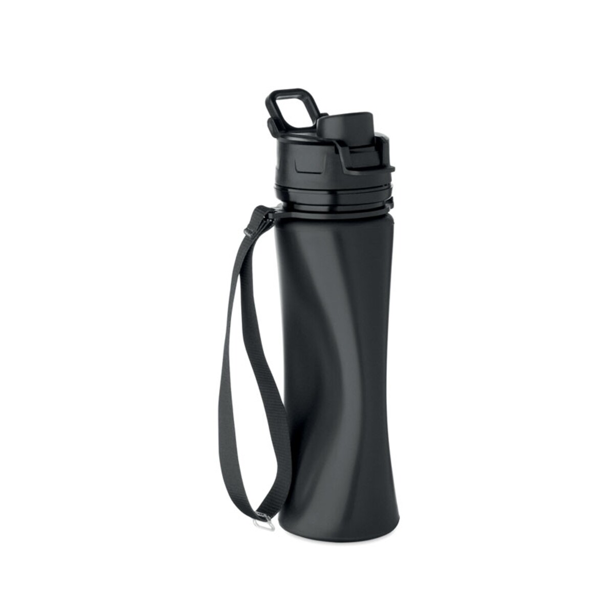 Składana silikonowa butelka LETT to nowoczesny, kompaktowy gadżet promocyjny, który zachwyci każdego miłośnika aktywnego stylu życia 😊. Wykonana z wysokiej jakości silikonu, posiada praktyczną pokrywkę z PP, wygodny uchwyt oraz poliestrowy pasek z przezroczystą klamrą, dzięki której po złożeniu zajmuje minimum miejsca w plecaku czy torbie. Jej pojemność 500 ml i fakt, że nie przecieka, czynią ją rozwiązaniem doskonałym na trening, spacer, wycieczkę czy do biura. Dodatkowo, średnica ø 6,7 cm, wysokość 24 cm i waga zaledwie 188 g sprawiają, że jest niezwykle lekka i poręczna.