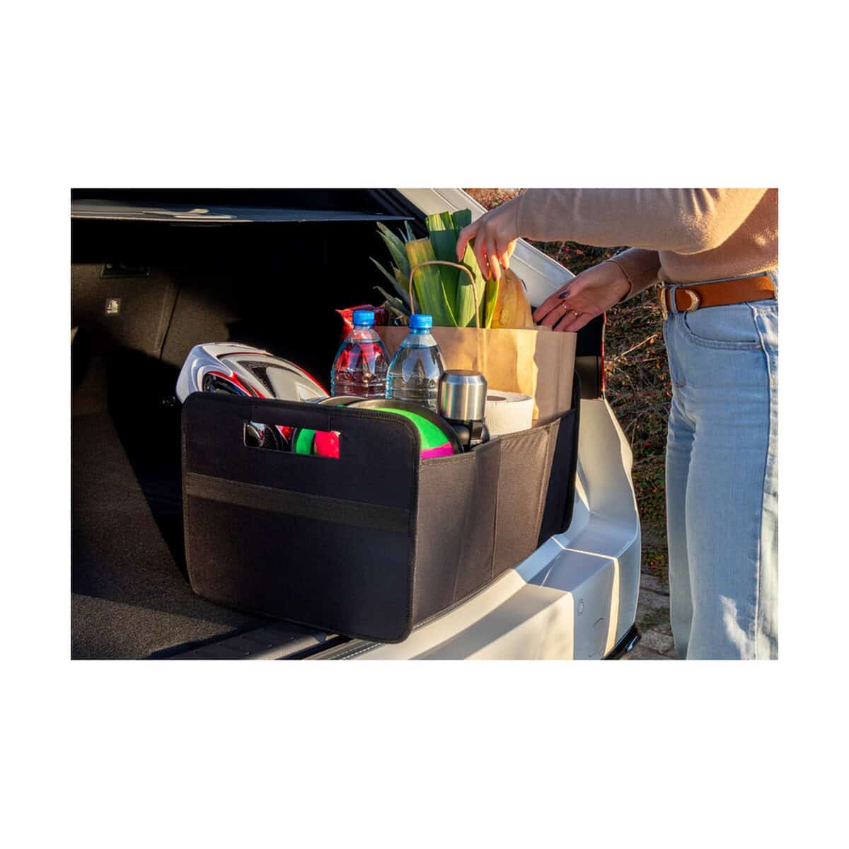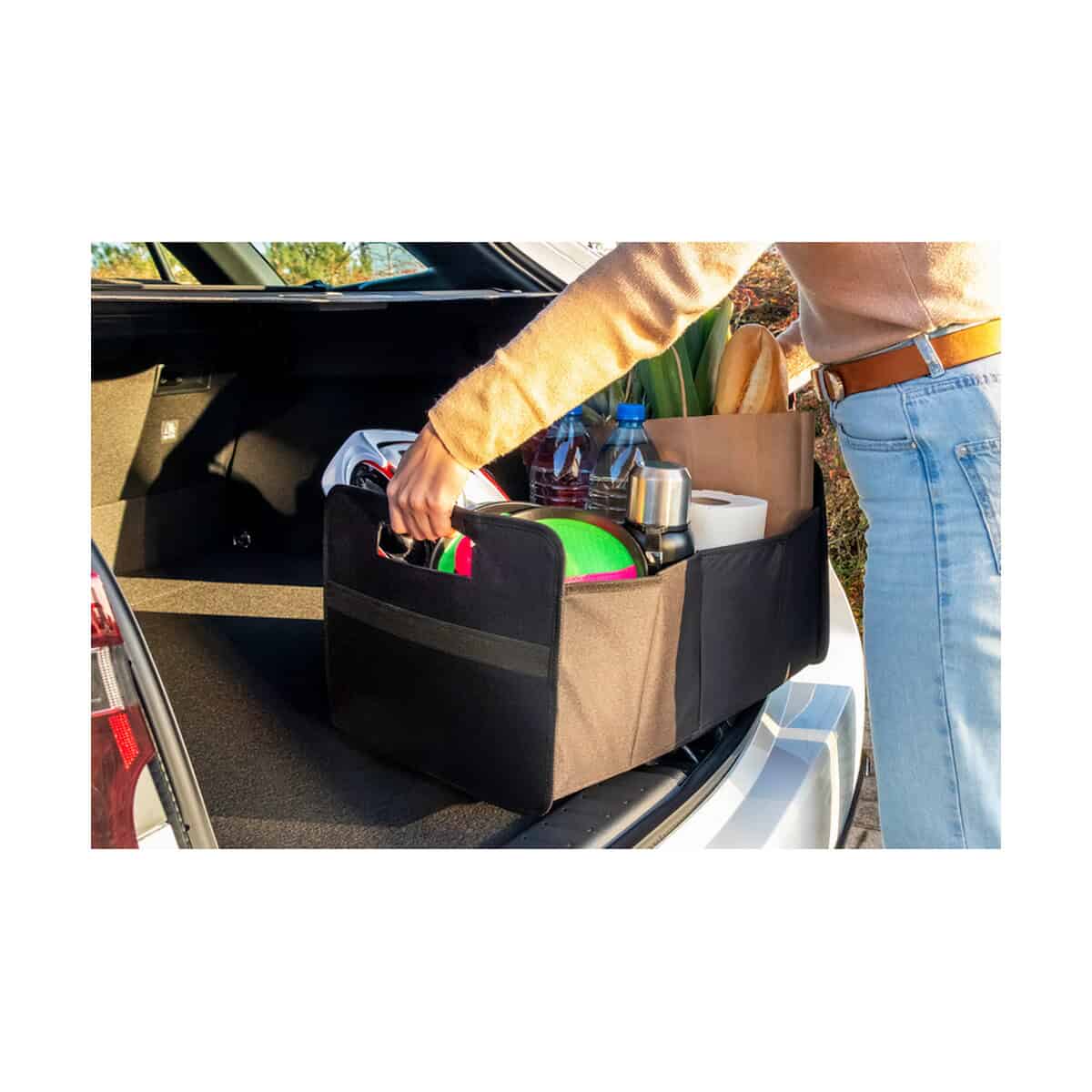 Solidny poliester 600D zapewnia odporność na przetarcia i łatwe czyszczenie, co czyni organizer niezawodnym towarzyszem długich tras. Jego uniwersalny design w kolorze czarnym pasuje do każdego wnętrza, a wytrzymałe uchwyty umożliwiają przeniesienie zawartości wprost z auta do domu czy biura.
