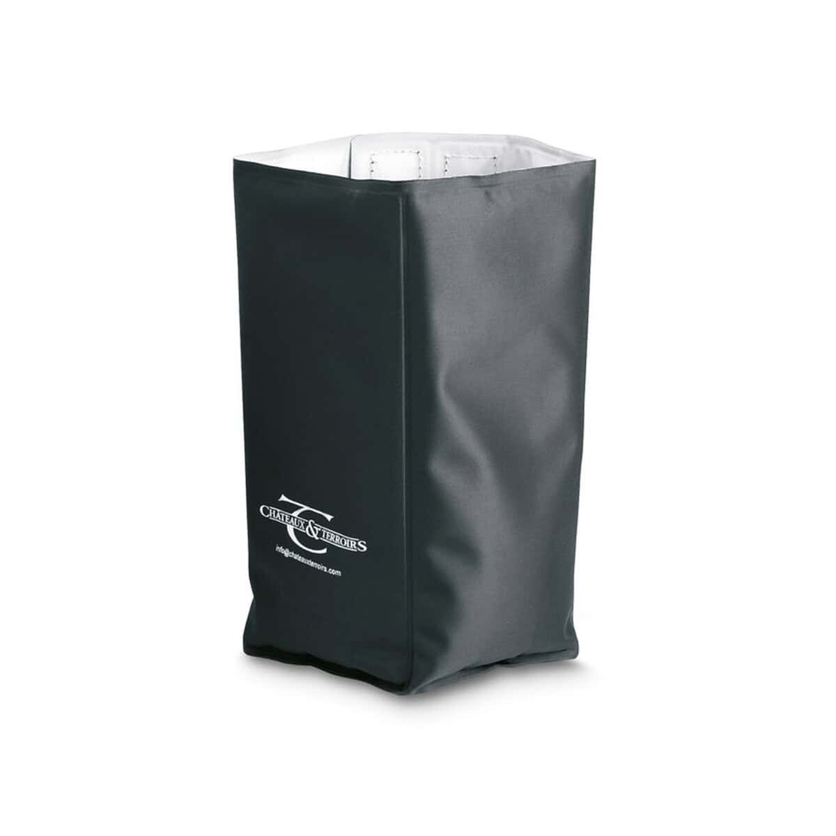 Skladany pojemnik na wino TERRAS o wymiarach 17 × 17 × 35 cm i wadze zaledwie 0,415 kg po złożeniu mieści się nawet w niewielkiej szufladzie, dzięki czemu można go bez trudu przewozić między degustacjami lub prezentacjami handlowymi. Neutralny, elegancki kolor: czarny stanowi świetne tło dla każdego logo, podkreślając klasę marki.