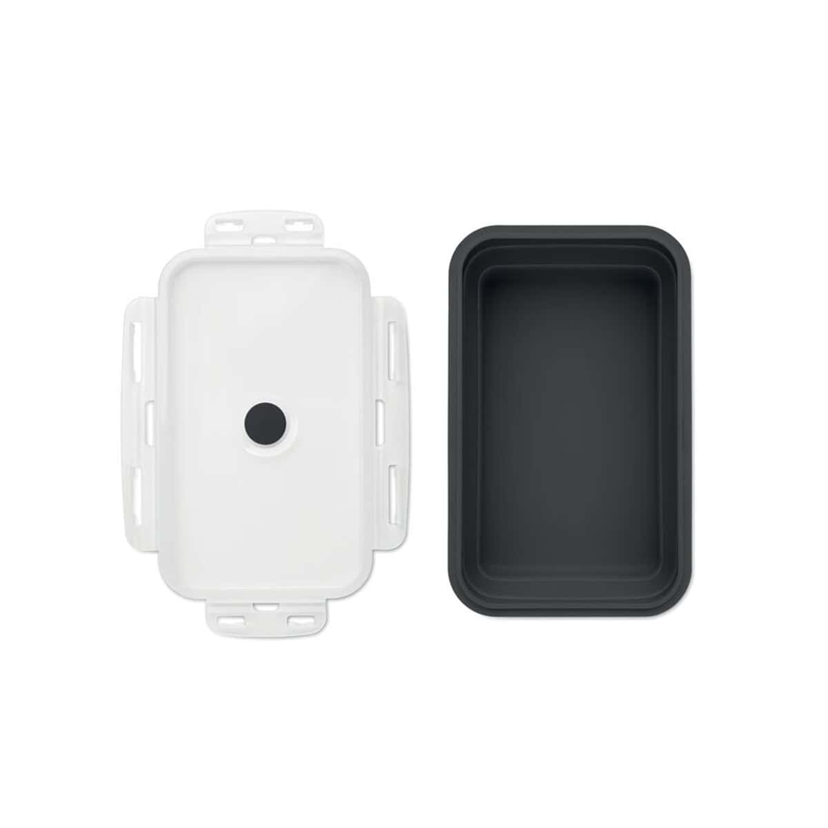Ten model o pojemności 1200 ml pomieści solidną porcję lunchu lub zdrowych przekąsek. Wymiary 21 × 13 × 7 cm i waga zaledwie 0,258 kg czynią go niezwykle poręcznym w drodze do pracy, szkoły czy na trening. Hermetyczna pokrywka z silikonowym zaworem umożliwia bezpieczne podgrzewanie w kuchence mikrofalowej i zapobiega wylaniu sosu w plecaku. W ofercie dostępne są modne kolory: czarny, błękitny i ciemnoszary, które podkreślą charakter firmy oraz jej spójny wizerunek.