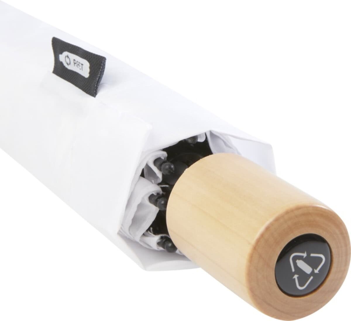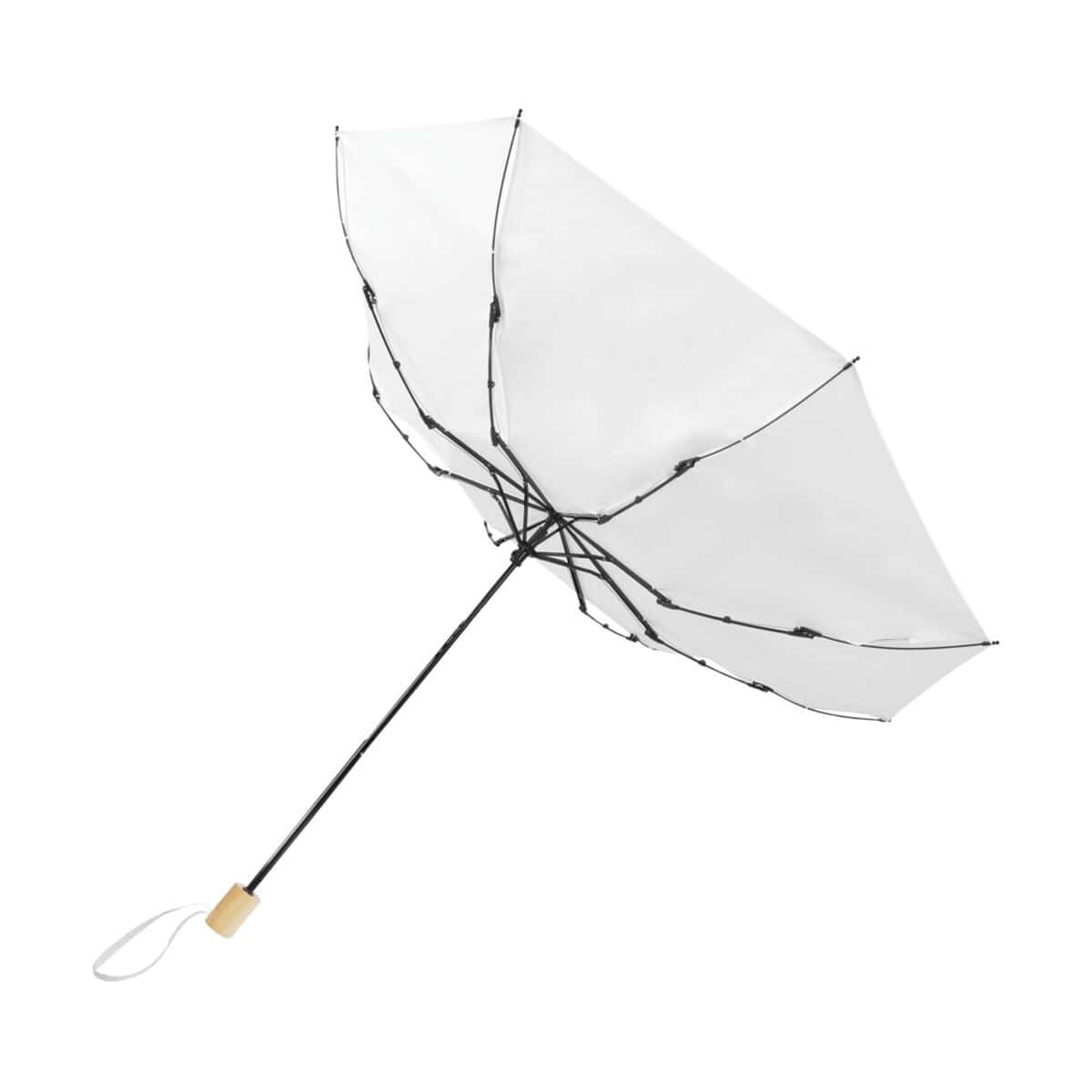 Składany wiatroodporny parasol 51 cm z PET z recyklingu Birgit to niezwykle funkcjonalny, a przy tym przyjazny środowisku gadżet, który z łatwością stanie się mobilną wizytówką dla Twojej firmy. Dzięki czaszy wykonanej z wytrzymałego Pongee z przetworzonych butelek PET oraz elastycznym żebrom z włókna szklanego parasol zachowuje pełną odporność na podmuchy wiatru, gwarantując użytkownikowi komfort nawet w trudnej aurze. Rękojeść z naturalnego drewna nadaje całości elegancki charakter, a niewielkie gabaryty po złożeniu (28 cm długości przy wadze zaledwie 276 g) pozwalają schować go do torebki, plecaka czy torby konferencyjnej. 🌧️