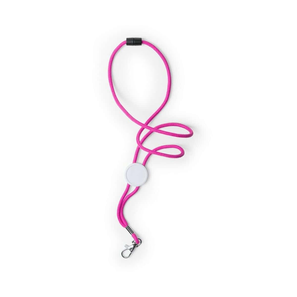 Praktyczny metalowy karabińczyk pozwala przypiąć identyfikator, klucze, karty dostępu czy pendrive’y, a okrągłe miejsce pod znakowanie daje dużą powierzchnię na trwały nadruk. Dostępność aż ośmiu żywych kolorów – różowego, czarnego, żółtego, pomarańczowego, czerwonego, białego, niebieskiego i zielonego – sprawia, że łatwo dopasujesz barwę do identyfikacji wizualnej swojej marki.