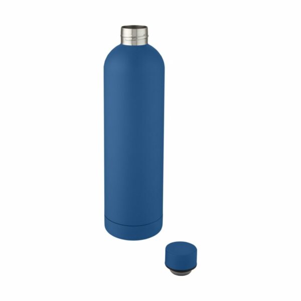 Butelka miedziana, izolowana próżniowo ze stali nierdzewnej jest idealnym rozwiązaniem dla osób ceniących sobie stylowy design. Wykonana z wytrzymałej stali nierdzewnej 18/8, jest odporna na skraplanie się wody wewnątrz butelki. Matowe wykończenie w postaci lakieru proszkowego jest trwałe i modne. Jest to produkt bezpieczny dla zdrowia, ponieważ jest wolny od BPA, a jego przetestowane i zatwierdzone właściwości wynikają z niemieckiej ustawy LFGB oraz przepisów REACH dotyczących zawartości ftalanów. Pojemność butelki wynosi 1 litr i zaleca się jej mycie ręczne. Dodatkowo zapakowana jest w kartonowe pudełko upominkowe wykonane z materiałów pochodzących z recyklingu.