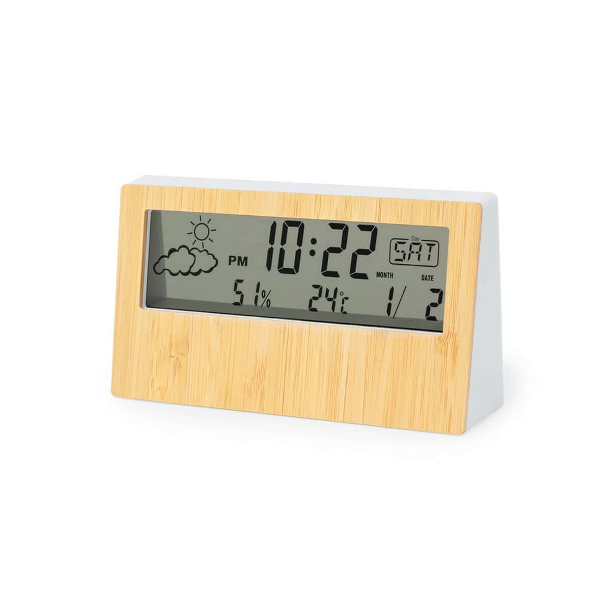 Stacja pogodowa to wyrafinowany, a zarazem niezwykle praktyczny gadżet, który sprawi, że codzienne monitorowanie warunków atmosferycznych zmieni się w prawdziwą przyjemność 🙂. Elegancki, ekologiczny front z bambusowy front nadaje urządzeniu niepowtarzalny charakter, a kompaktowe wymiary 7,3 × 13,3 × 3,1 cm pozwalają postawić je zarówno na biurku, półce, jak i recepcyjnym blacie. W jednym, stylowym korpusie kryją się aż cztery kluczowe funkcje: zegar z budzikiem, pomiar temperatura, kontrola wilgotność powietrza oraz przejrzysty kalendarz. Dzięki temu użytkownik otrzymuje komplet informacji potrzebnych do zaplanowania dnia bez konieczności sięgania po smartfona.