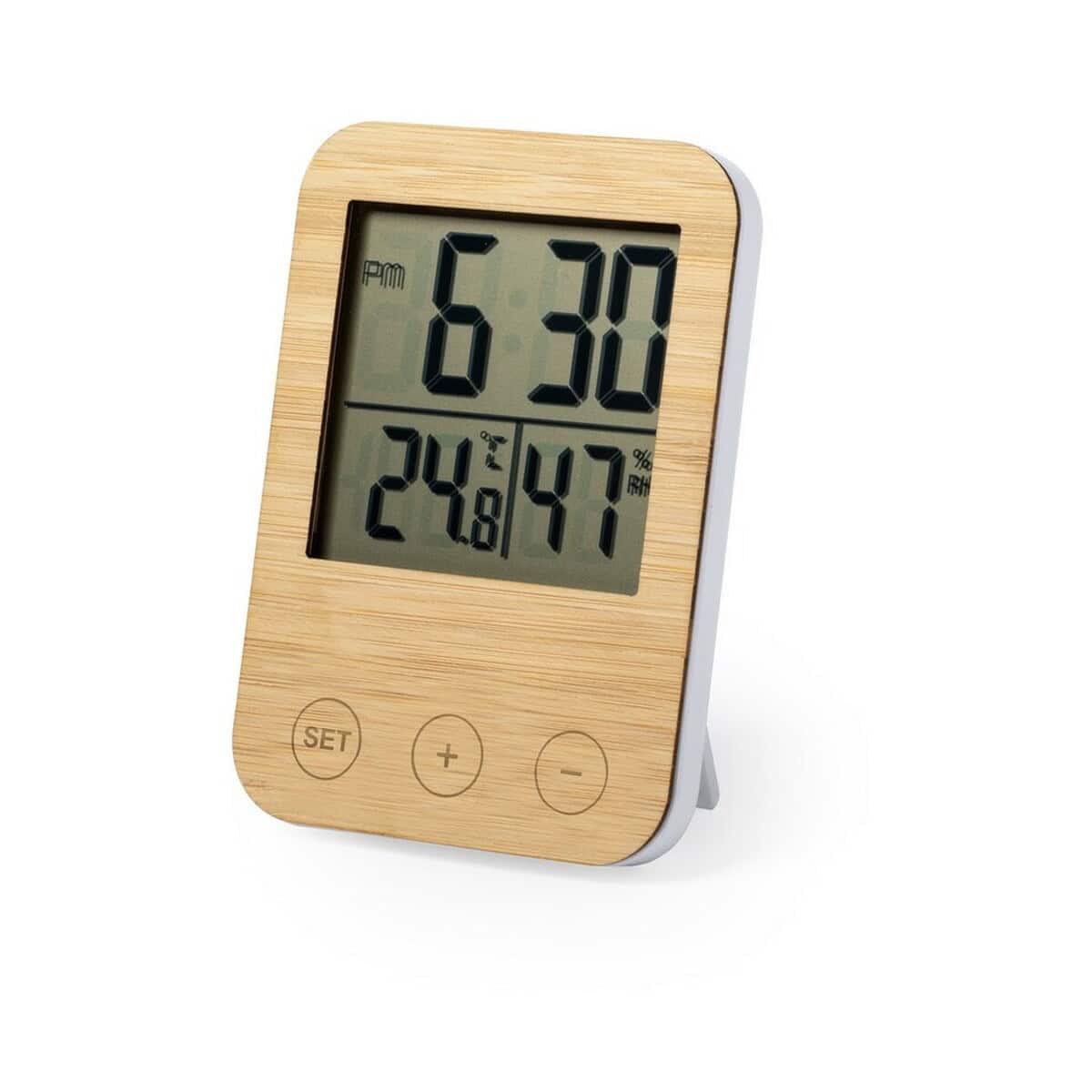 Wyświetlacz prezentuje czytelny zegara, aktualną temperatura oraz wilgotność powietrza, pozwalając precyzyjnie kontrolować warunki w pomieszczeniu. Ta Stacja pogodowa świetnie sprawdzi się w branży eko, inteligentnego budownictwa, turystycznej, a także w biurach architektonicznych czy hotelarstwie, gdzie komfort gości jest priorytetem. Możesz umieścić na niej swoje logo albo indywidualny nadruk, co czyni ją unikalnym nośnikiem przekazu reklamowego 🙂.