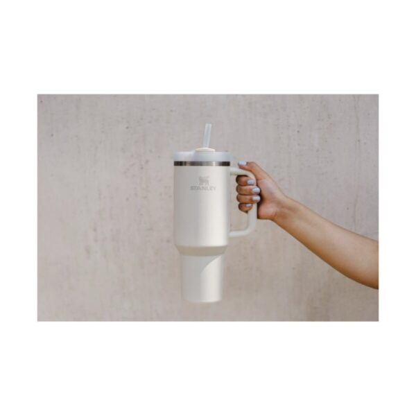 Kubek Stanley Quencher H2.0 o pojemności 1200 ml jest wykonany ze stali nierdzewnej pochodzącej z recyklingu, dzięki czemu jest bardziej przyjazny dla środowiska . Zaawansowana pokrywka FlowState™ posiada obrotową pokrywę z trzema pozycjami: otworem na słomkę zaprojektowanym tak, aby był odporny na rozpryskiwanie, a jednocześnie utrzymywał słomkę wielokrotnego użytku na miejscu, otworem na napój i w pełni zakrytą pokrywę. Dzięki izolacji próżniowej napój pozostanie zimny przez 11 godzin (48 godzin, gdy jest zmrożony). Ergonomiczny uchwyt ma wygodne wkładki ułatwiające przenoszenie, a wąska podstawa pasuje do większości samochodowych uchwytów na kubki.