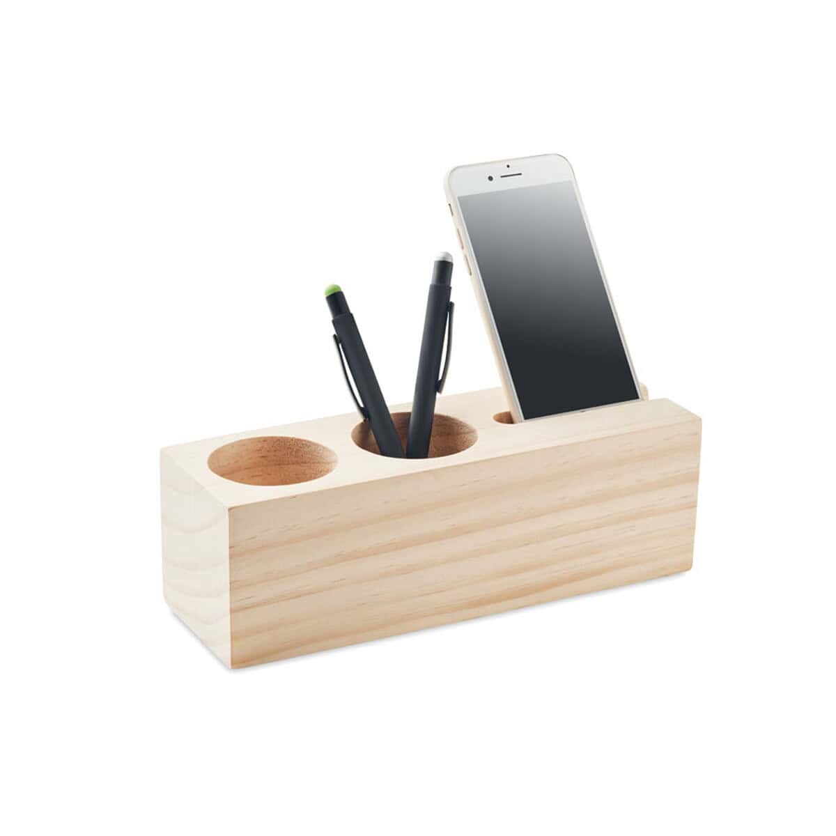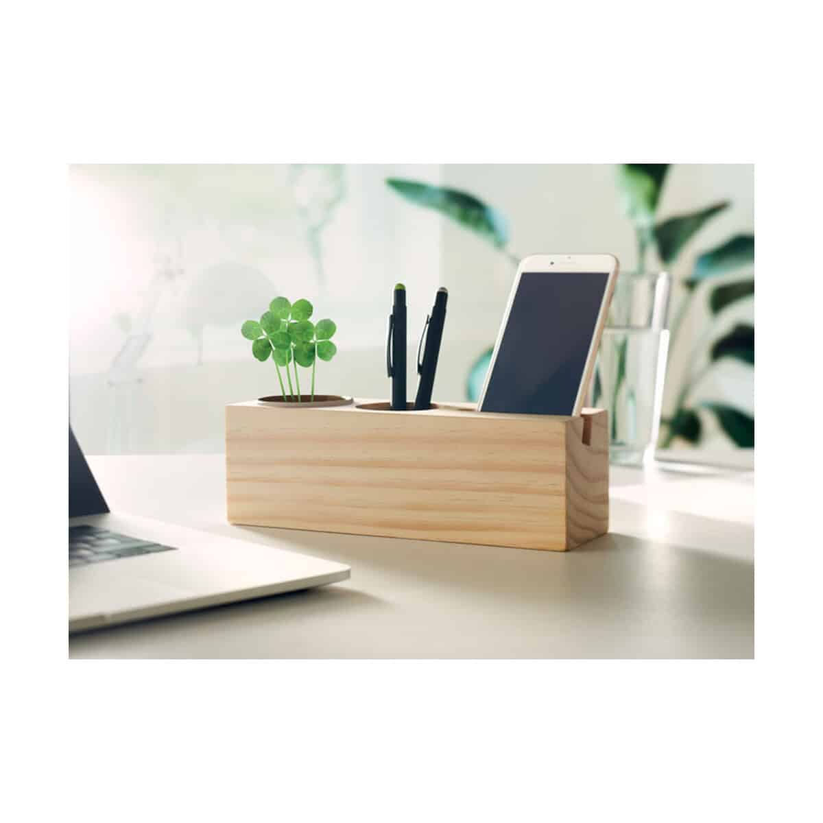 Produkt wyróżnia się parametrami: Waga 0,500 kg, Materiał: drewno, Kolor: naturalny drewniany. Całość jest lekka, a zarazem solidna, dzięki czemu organizer nie przesuwa się po powierzchni. To perfekcyjne rozwiązanie, by uporządkować przybory, zadbać o zielony akcent i wyeksponować reklamowe przesłanie. 😊