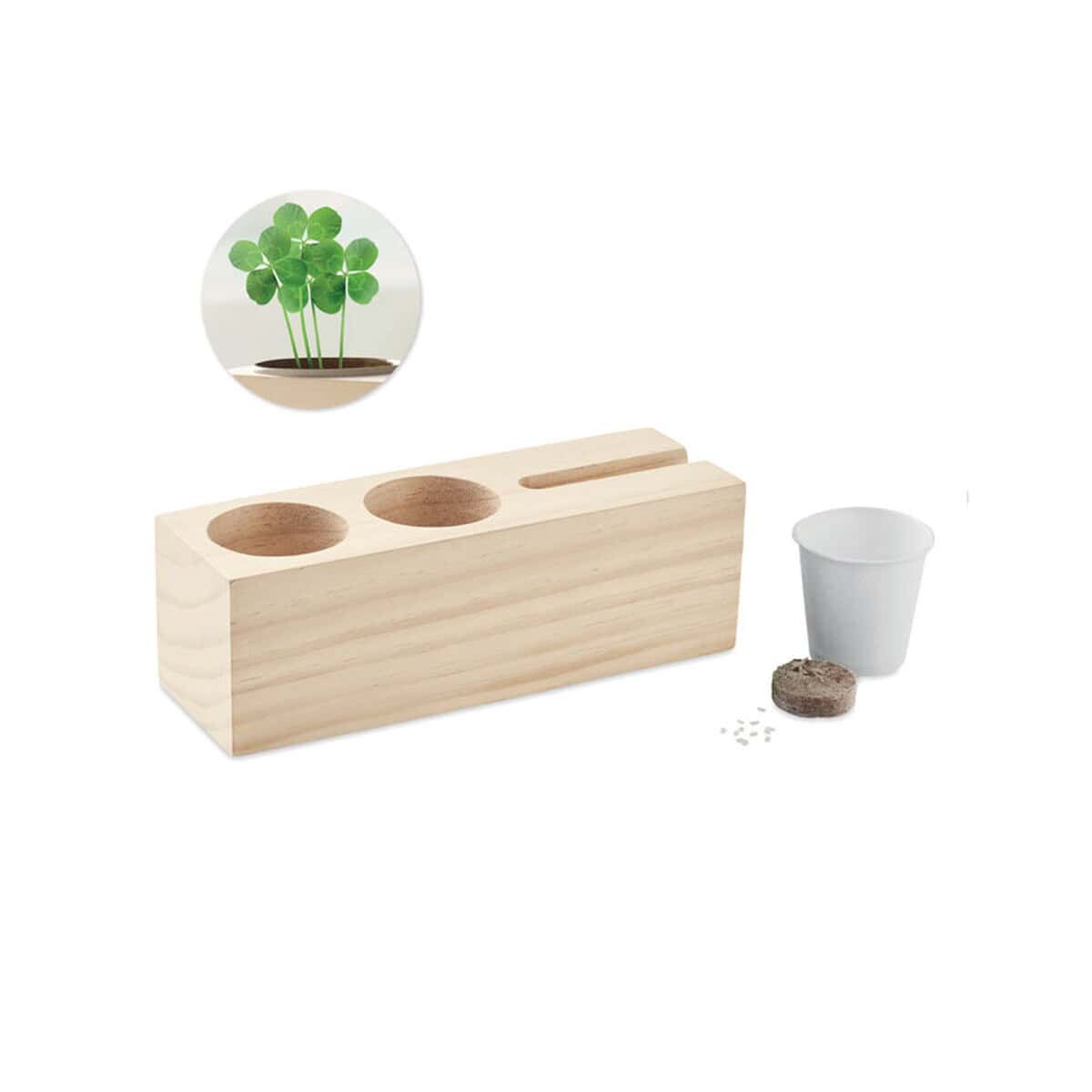 Jako gadżet biurkowy należy do kategorii „Gadżety na biurko z logo”, natomiast dzięki możliwości uprawy rośliny odnajduje się także w sekcji „Gadżety do ogrodu z logo”. To sprawia, że wykorzystasz go zarówno w kampaniach ekologicznych, jak i motywacyjnych – koniczyna symbolizuje szczęście, więc będzie doskonałym talizmanem sukcesu. Agencje nieruchomości mogą podarować go klientom przy przekazaniu kluczy, a studia kreatywne – partnerom biznesowym, podkreślając rozwój i innowację.