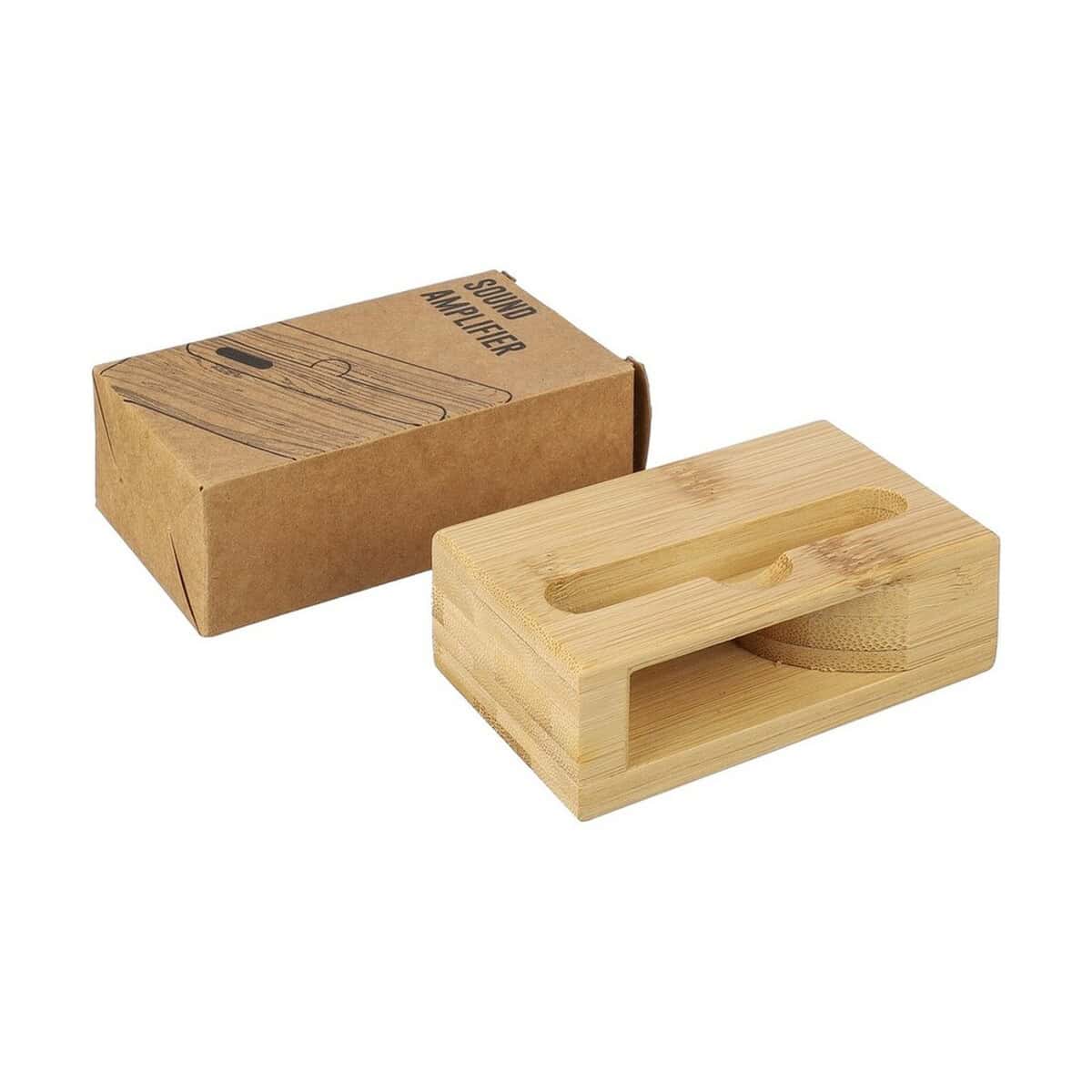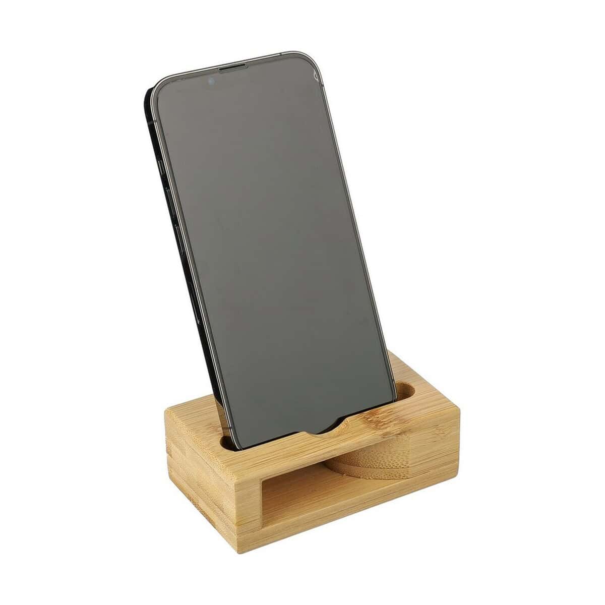 Stojak na telefon z bambusa to niewielkie, lecz niezwykle funkcjonalne gadżet o wymiarach 9,6 × 5,7 × 3,3 cm i wadze zaledwie 96 g. Naturalny, brązowy bambus nadaje mu ciepły charakter, a jednocześnie podkreśla ekologiczne wartości, które coraz częściej są ważne dla Twojej firmy. Dzięki wbudowanemu tunelowi akustycznemu ten sprytny stojak pełni funkcję wzmacniacza – muzyka płynąca z głośnika smartfona kierowana jest ku dołowi i odbijając się od powierzchni biurka, zyskuje wyraźnie mocniejsze brzmienie, bez konieczności użycia baterii czy kabli 🙂. To perfekcyjny wybór, gdy chcesz w prosty sposób podkręcić dźwięk podczas wideokonferencji, prezentacji multimedialnych lub po prostu relaksu przy ulubionych playlistach.