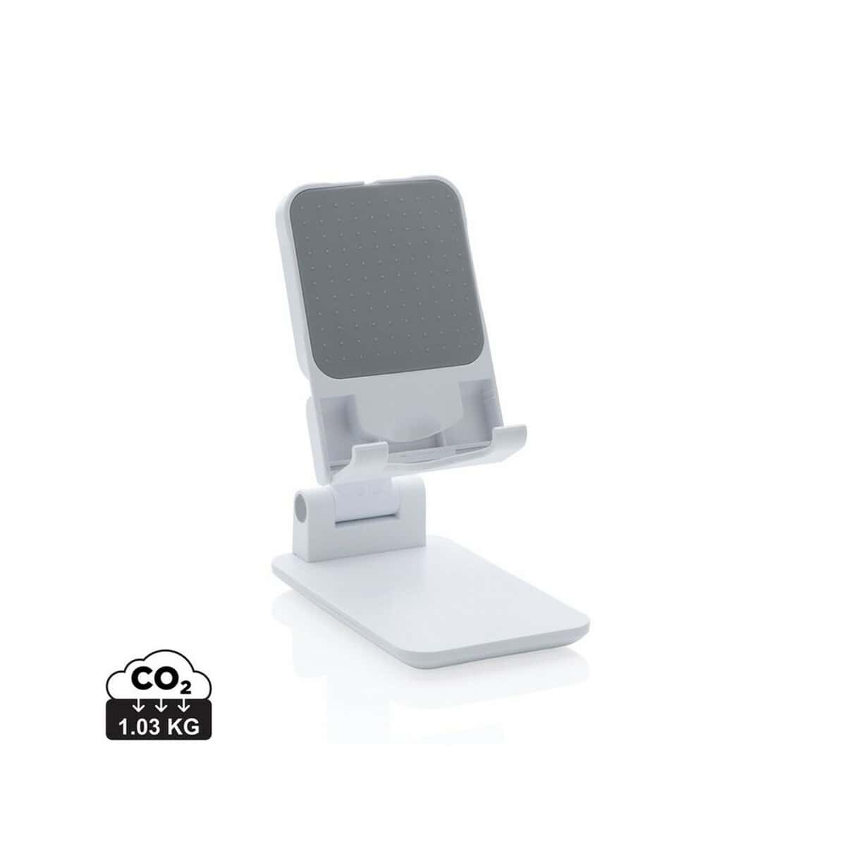 Stojak na telefon, tablet to nowoczesny, a zarazem funkcjonalny gadżet, który błyskawicznie wyróżni każde biurko i stanowisko pracy 🙂 Wykonany z trwałego ABS oraz miękkiego silikonu, o kompaktowych wymiarach 11 × 6,6 × 3,2 cm, sprawdzi się zarówno w biurze, domu, jak i w podróży. Dzięki możliwości regulacji kąta nachylenia i regulowanej wysokości użytkownik łatwo dopasuje pozycję ekranu do swoich potrzeb, co znacząco odciąża kark i wzrok. Zintegrowany silikonowy element chroniący przed zarysowaniem pozwala bezpiecznie umieścić ładowarkę MagSafe, a ciężka podstawa oraz silikonowe paski zapewniają stabilność, nawet gdy urządzenie jest w etui. Dodatkowym atutem jest niski ślad węglowy 1,03 kg CO₂, co czyni ten model przyjaznym środowisku.