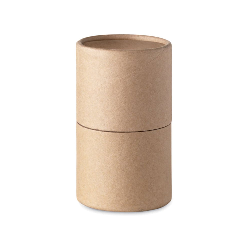 • 6 elementowy zestaw, zawierający piórnik z juty i bawełny, bambusową linijkę, drewnianą temperówkę, gumkę, ołówek i długopis z tektury z niebieskim tuszem