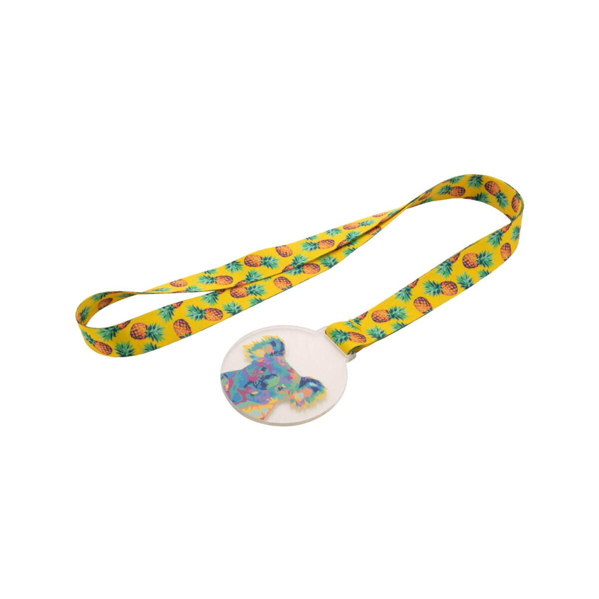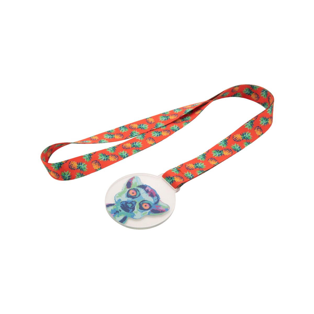 Nasz medal akrylowy został dodatkowo wzbogacony o smycz RPET z nadrukiem sublimacyjnym, który tworzy niepowtarzalny efekt wizualny. Dodatkowo, dzięki nadrukowanej grafice sublimacyjnej i UV LED, medal nabiera wyjątkowego charakteru.
