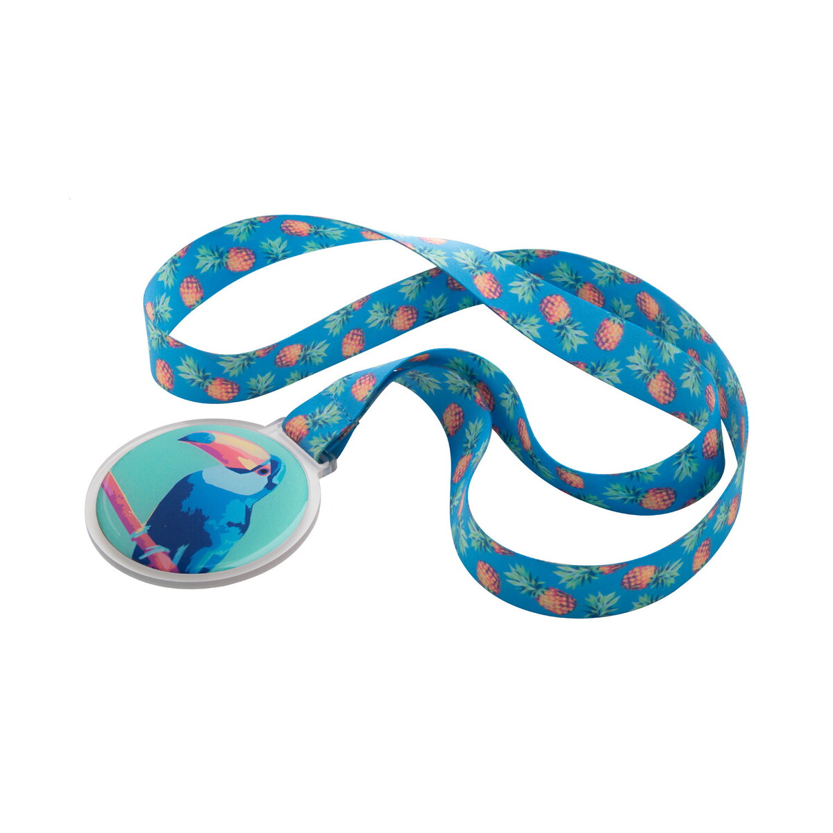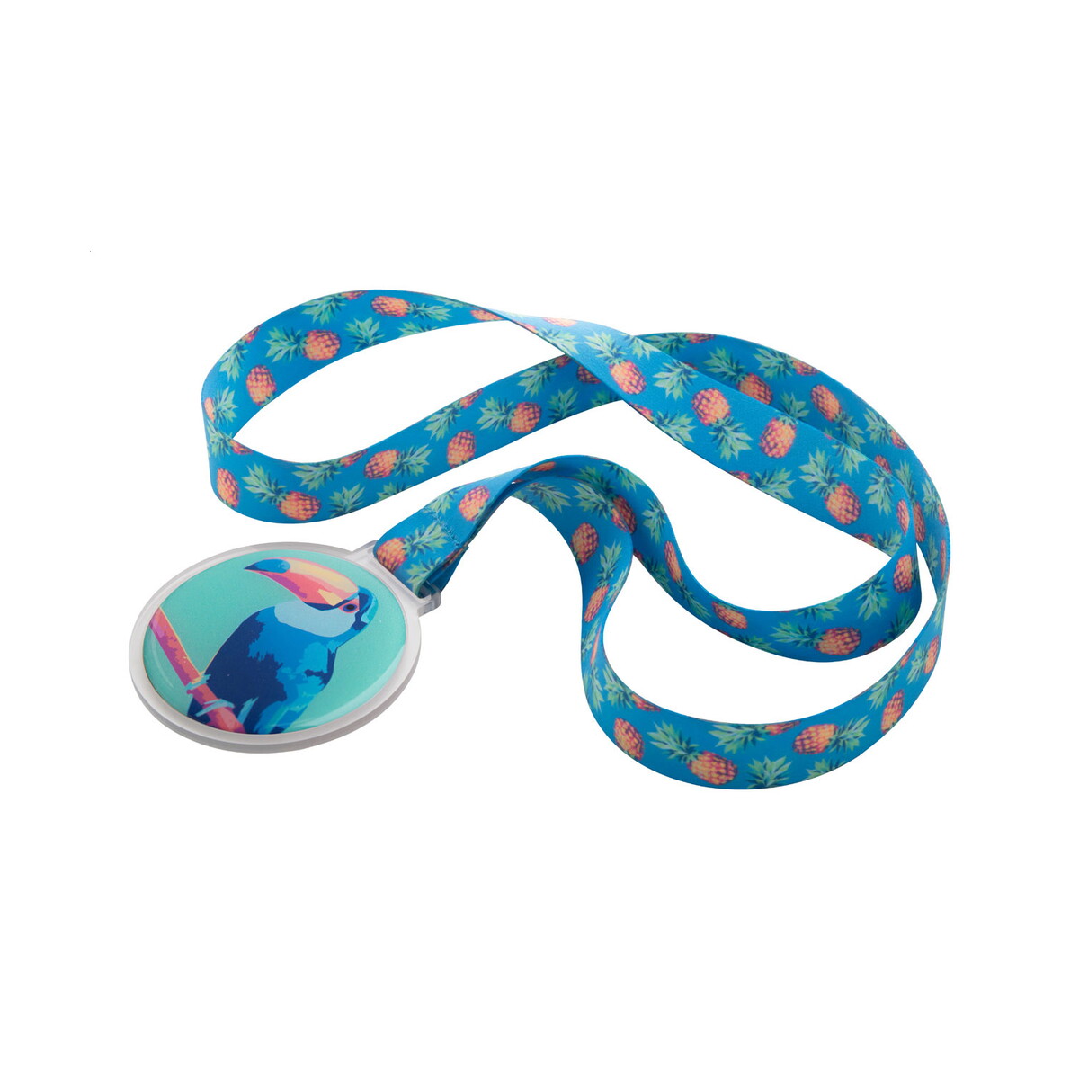 Subdal medal to nowoczesny, przezroczysty krążek o średnicy 70 mm, wykonany z trwałego akrylu i zawieszony na wygodnej, 500-milimetrowej smyczy poliestrowej z pełnokolorowym sublimacyjnym nadrukiem. W centrum błyszczy indywidualny doming epoxy, który podkreśla każde logo niczym szklana soczewka, przyciągając wzrok i podnosząc prestiż nagrody. Lekkość – zaledwie 18 g – sprawia, że nawet kilkugodzinne noszenie nie stanowi problemu, co czyni ten produkt wyśmienitym wyborem na eventy masowe 😊.