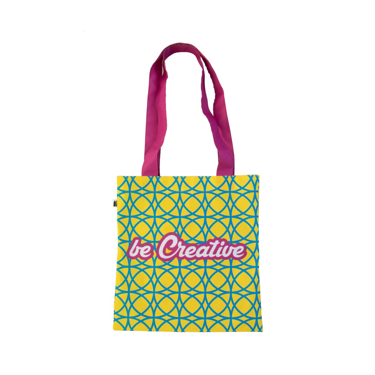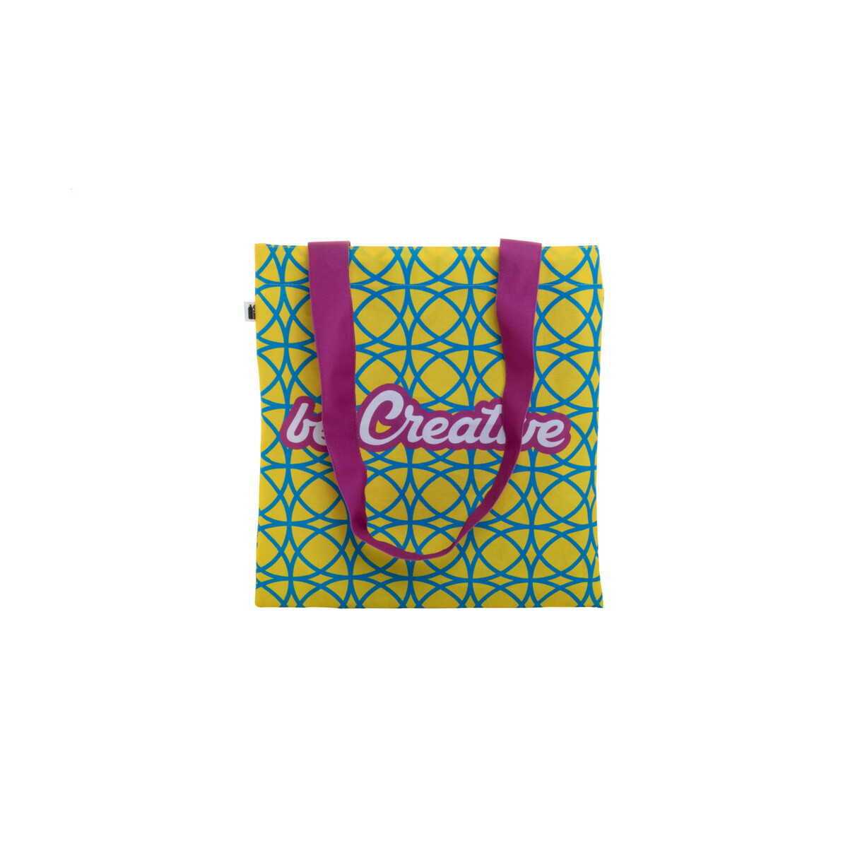 Full-kolorowy nadruk wykonywany metodą sublimacji otwiera drogę do kreatywnego designu: gradienty, zdjęcia produktów, hasła motywacyjne – nic tu nie jest ograniczeniem. Charakterystyczna metka RPET nie tylko podkreśla proekologiczny charakter torby, lecz także buduje historię marki, która troszczy się o planetę ♻️. To czyni produkt atrakcyjnym zarówno dla startupów zero-waste, jak i dużych korporacji, które chcą odświeżyć swój wizerunek. W minimalnym nakładzie 25 sztuk możesz szybko przygotować serię toreb na targi branżowe, konferencje czy akcje street marketingu.