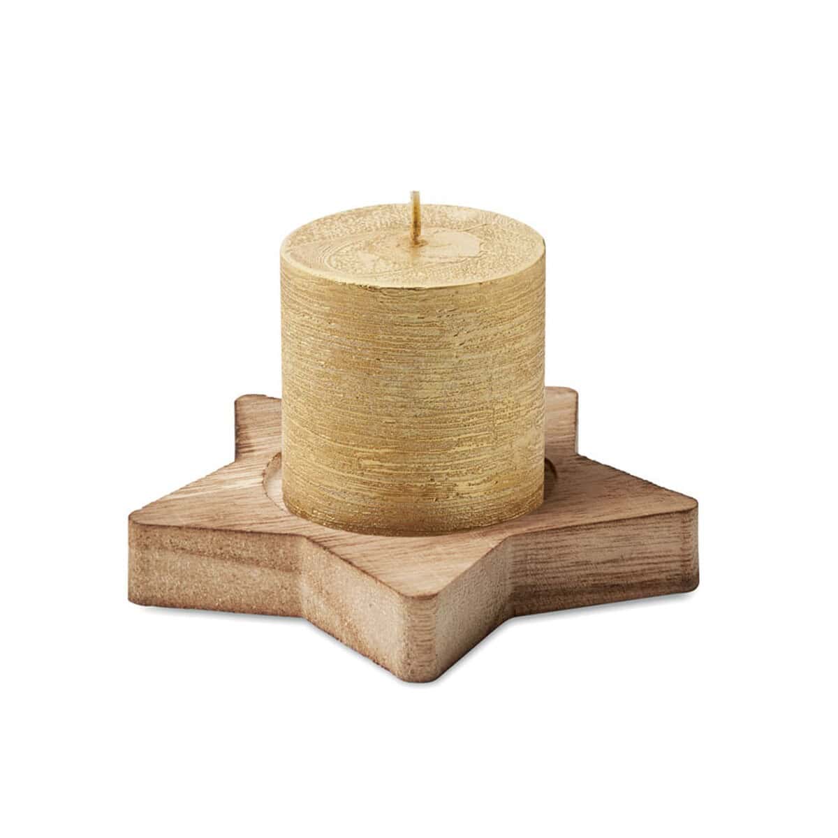 Świeca na drewnianej podstawce LOTUS