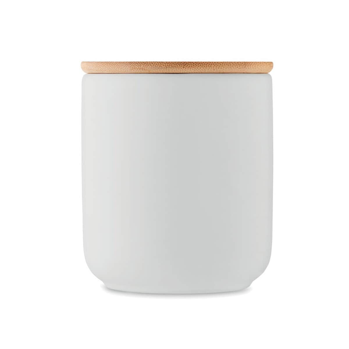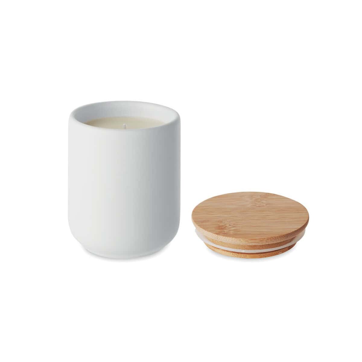 Świeca roślinna 200 gr VEIKA to znakomity sposób, by wprowadzić do każdego wnętrza zmysłową aurę świeżego lnu i jednocześnie podkreślić wizerunek marki. Ten elegancki gadżet promocyjny, wykonany z ekologicznego wosku roślinnego, zamknięty został w minimalistycznym kamionkowym pojemniku o wymiarach ø8×9,3 cm i uzupełniony naturalną bambusową pokrywką. Bambus, jako surowiec naturalny, może różnić się odcieniem czy usłojeniem, co sprawia, że każda sztuka jest unikatowa i podkreśla indywidualny charakter Twojej marki 😊.