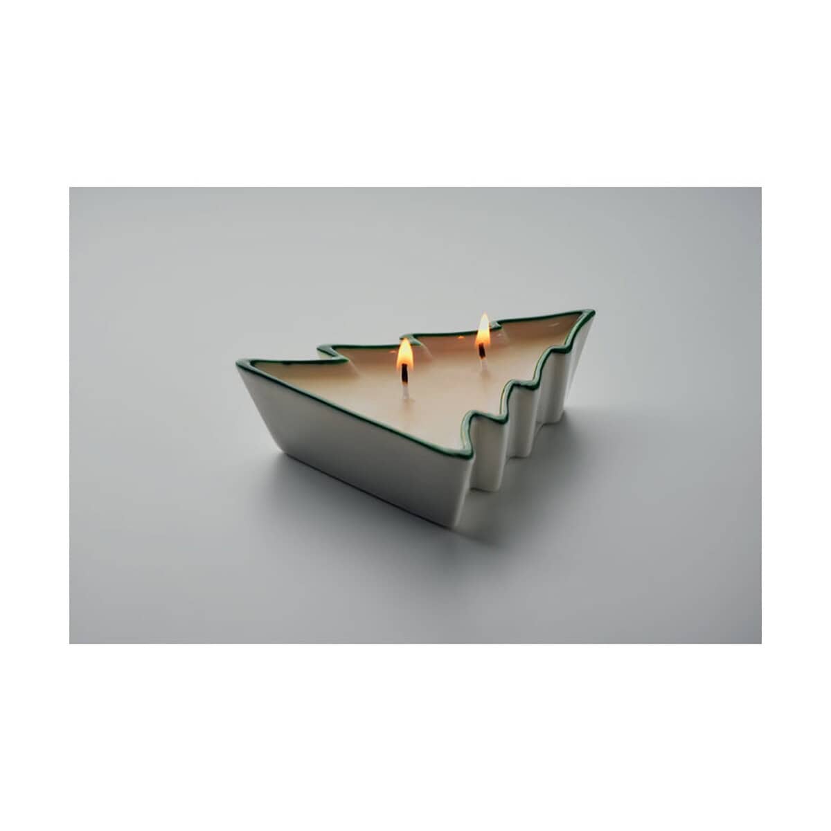 Świeca roślinna 60gr HOLIFIR to wymarzony akcent świątecznego klimatu, który przyciąga wzrok już od pierwszej chwili. Ukryta w eleganckim porcelanowym pojemniku w kształcie choinki, zachwyca zielonym kolorem i subtelnym połyskiem ceramiki. Dzięki zastosowaniu wosku roślinnego oraz dwóm knotom płomień rozświetla wnętrze równomiernie przez około 4 godziny, roztaczając przyjemne, naturalne ciepło. 🙂