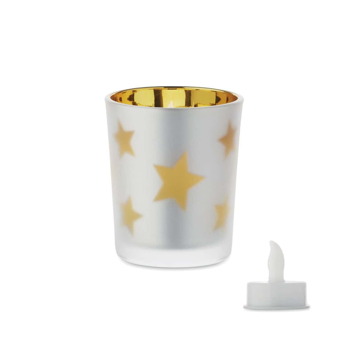 Świeczka dostępna jest w trzech gustownych kolorach: złotym, czerwonym i srebrnym. Na szklanej powierzchni bez trudu umieścisz swoje logo lub pełnokolorowy nadruk, dzięki czemu każdy odbiorca będzie pamiętał o Twojej marce za każdym razem, gdy zapali subtelny płomyk LED. Ta elegancka forma ekspozycji sprawdza się zwłaszcza w sektorze hotelarskim, SPA, wellness, gastronomicznym, a także w branży kosmetycznej i wnętrzarskiej – wszędzie tam, gdzie liczy się atmosfera i dbałość o detal.