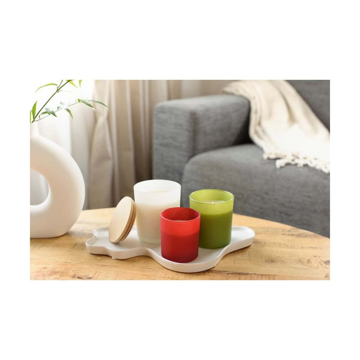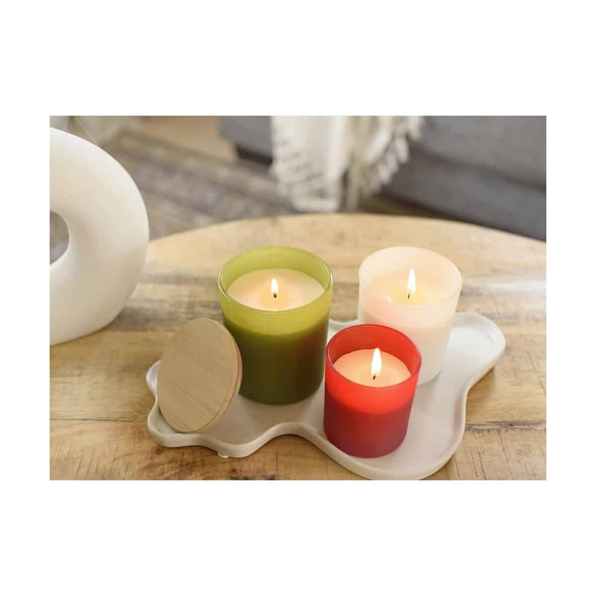 Wykonana z połączenia szkła i naturalnego bambusowego wieczka, wypełniona głównie woskiem roślinnym carnauba, Świeczka zapachowa gwarantuje około 33 godzin palenia. Do wyboru zapachy: 02-wanilia, 03-drzewo sandałowe, 05-cynamon, 06-jaśmin, a także cztery szykowne kolory słoiczka: czerwony, zielony, biały i czarny. Wymiary Ø9,3 × 12 cm pozwalają na wygodne ustawienie zarówno w biurze, jak i w domu.